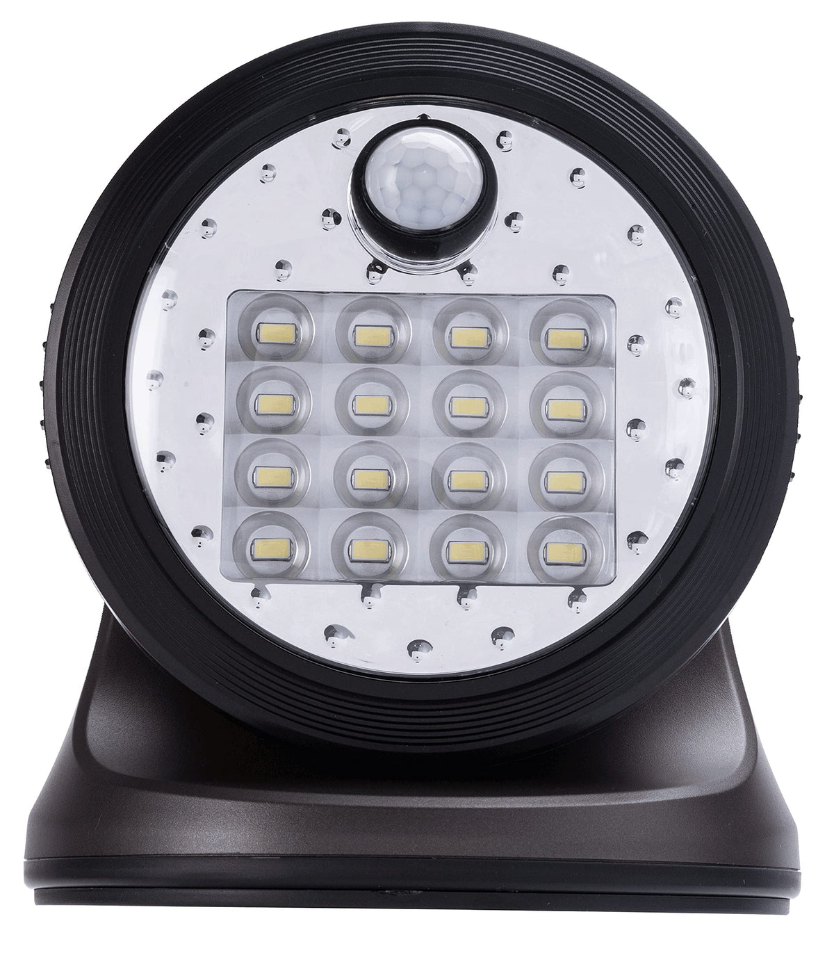 Detects motion in a 25-ft. range 16 LED 400 lumen (brightest light in its category) Lights stay on for 30 seconds after motion stops Weather proof housing Multiple uses — garage, yard, driveway, patio, etc. Installs almost anywhere with included screws (no wiring or AC outlet needed) Adjustable head tils and rotates to the perfect angle Photo sensor prevents daytime activation Available in Champagne or Bronze Requires 4 D batteries