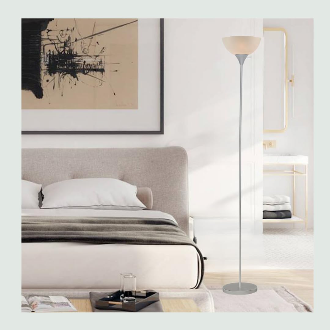 The Susan Silver Floor Lamp is the ultimate standing floor lamp for modern living rooms, blending style and functionality seamlessly. Unlike ordinary pole lamps, this adjustable lamp fits perfectly into any corner, making it an essential pole lamp for living room spaces. With a separate reading light, it serves as both a stand-up lamp and a reading solution. Designed as a multi-functional light stand lamp, it provides soft, adjustable lighting, ideal for reading or entertaining. It's more than just an office light or a tall standing lamp-it's a versatile piece that enhances your living space. Discover the Susan Silver Floor Lamp, engineered to optimize your living room as a workspace. Positioned next to your couch, this standing floor lamp offers targeted light for work or leisure. Its adjustable features make it the ideal stand-up lamp for any task. The dual-lighting system ensures just the right brightness for reading or working. More than a corner lamp, it's your work-from-home companion that balances comfort and productivity. Choose the Susan Silver Floor Lamp to elevate your living space. The Susan Silver Floor Lamp features adjustable and independent lighting. Tailor the reading light to your needs while operating the main light separately. Ideal for multitasking, this lamp offers versatile lighting in a sleek design. The Susan Silver Floor Lamp offers dual lighting: a max 100W E26 bulb for the main light and a max 40W E26 for reading. For cool, efficient operation, LED bulbs are recommended. Bulbs are not included.
