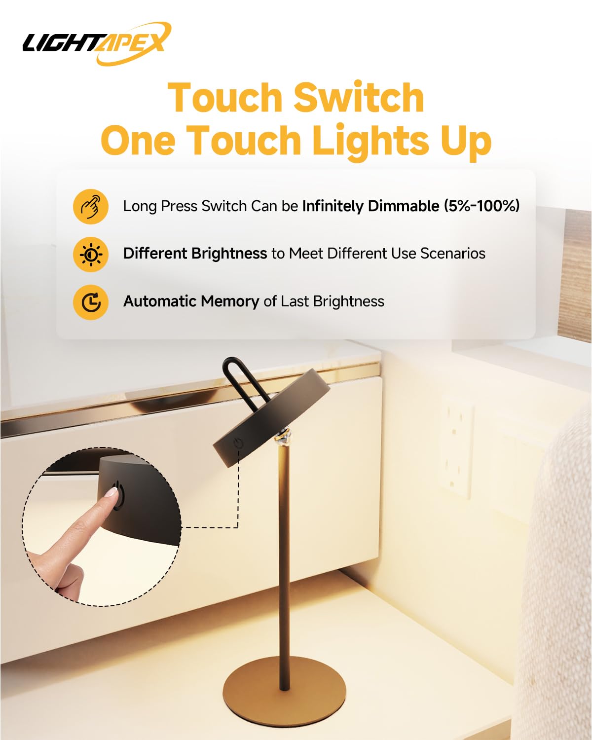 The Lightapex Cordless Table Lamp (2-Pack) Combines Functionality And Style, Offering Unmatched Convenience And Versatility. Its Sleek, Lightweight Design Features A 5000Mah Rechargeable Battery, Delivering 10-12 Hours Of Continuous Illumination. With Stepless Dimming, You Can Adjust The Brightness Smoothly From 5% To 100%, Creating The Perfect Ambiance For Any Setting. The Magnetic Detachable Base Allows 360 Rotation, Ensuring Flexible Lighting Angles. Crafted From Premium Metal, This Lamp Is Both Durable And Portable, Ideal For Bedrooms, Living Rooms, Patios, Or As A Decorative Touch To Any Space.