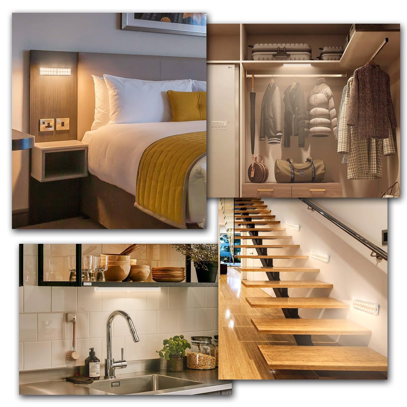 Q: How bright are the Lightbiz Under Cabinet Lights?A: The Lightbiz Under Cabinet Lights feature 24 energy-saving LEDs that provide a brightness of 150 lumens, ensuring sufficient illumination for dark spaces like kitchens, closets, and hallways.