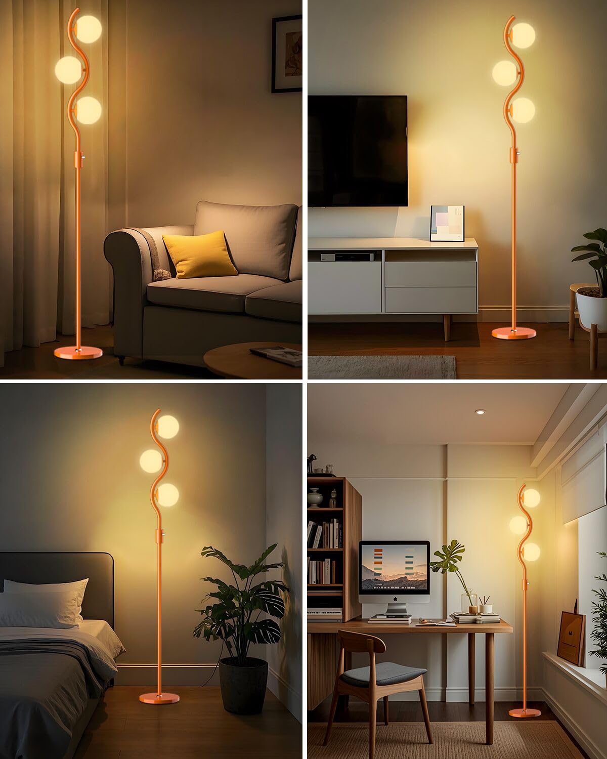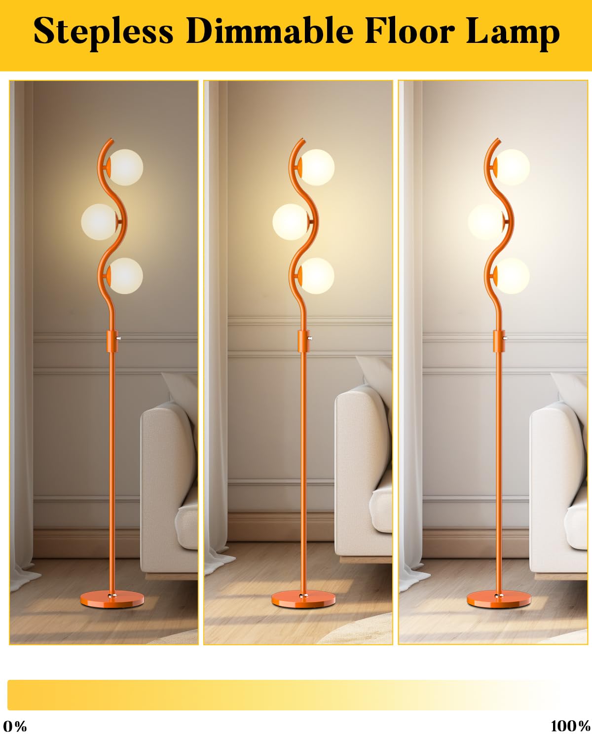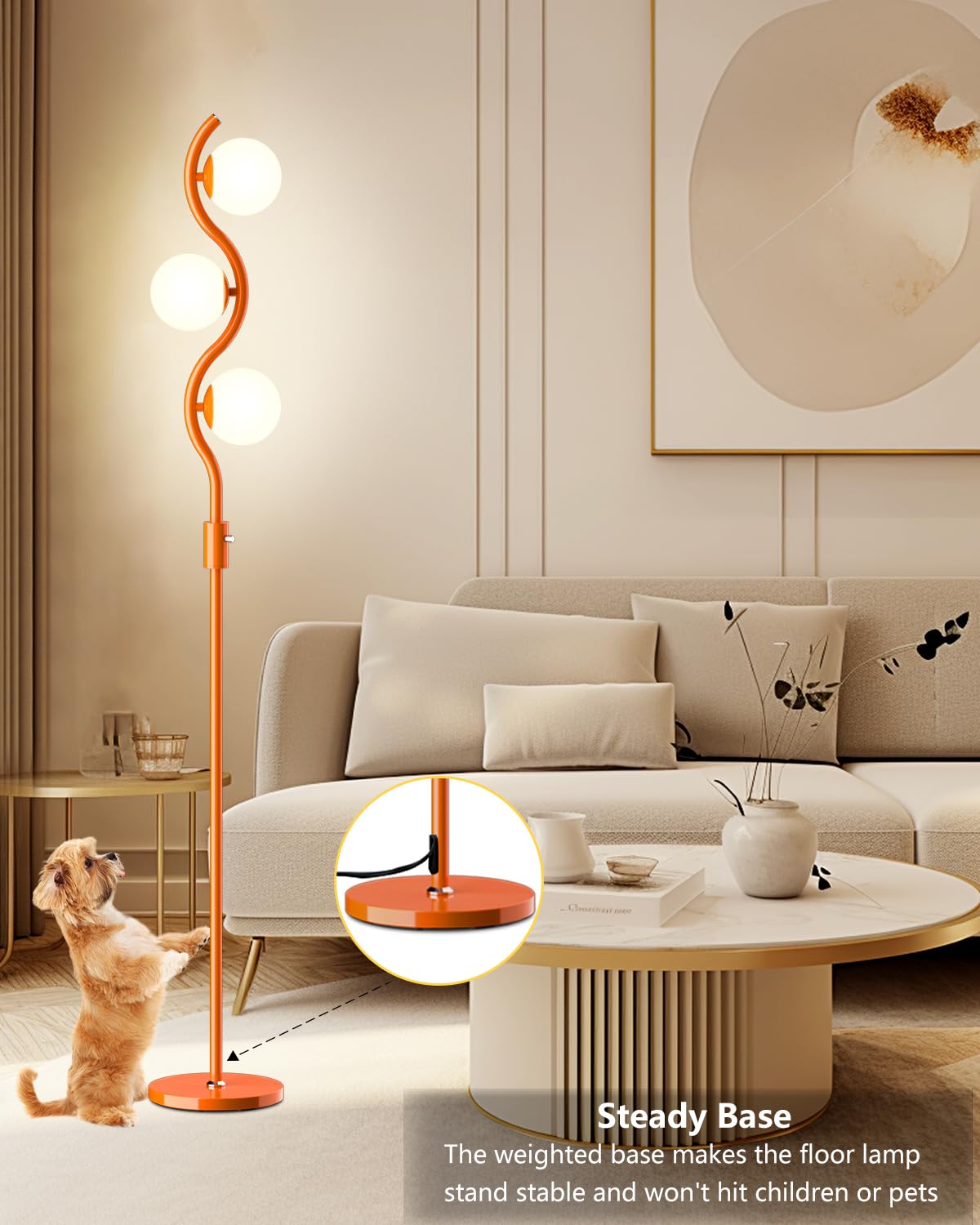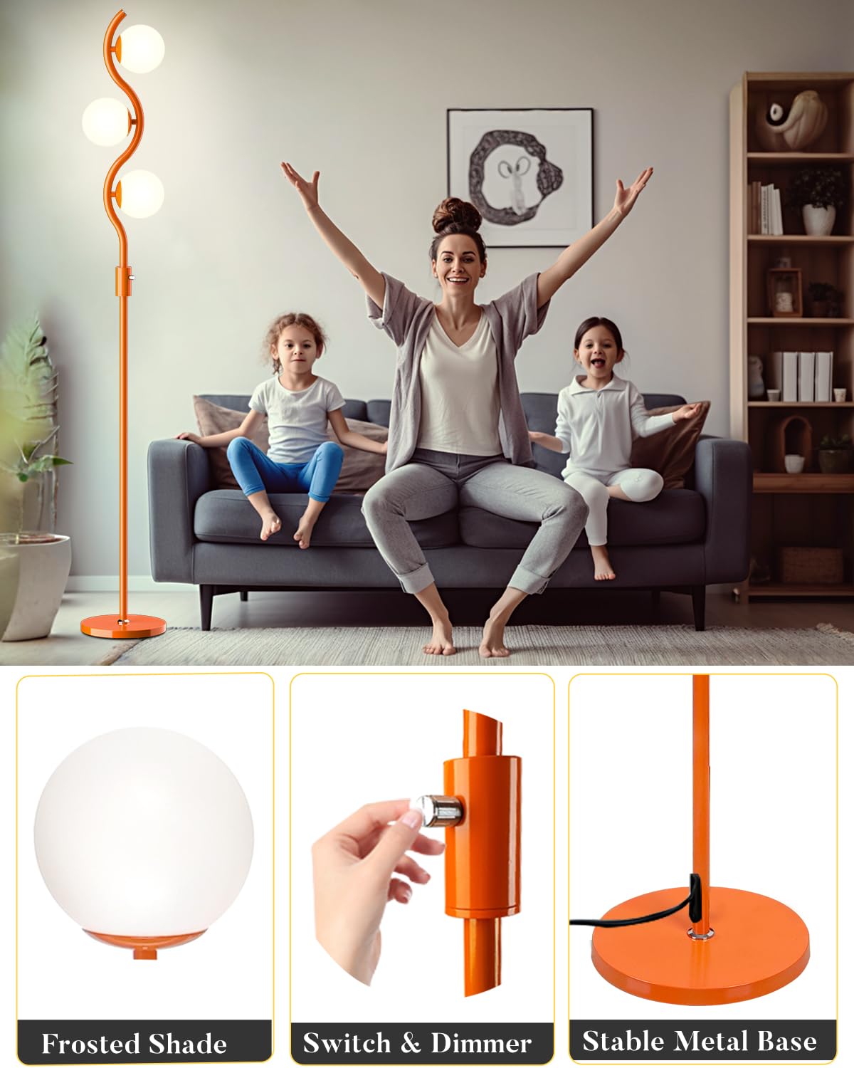 Lightdot 3-Globe Dimmable Floor Lamp Orange Mid Century Modern Standing Lamp With 3Pcs 3000K G9 Bulbs Stepless Brightness Adjust