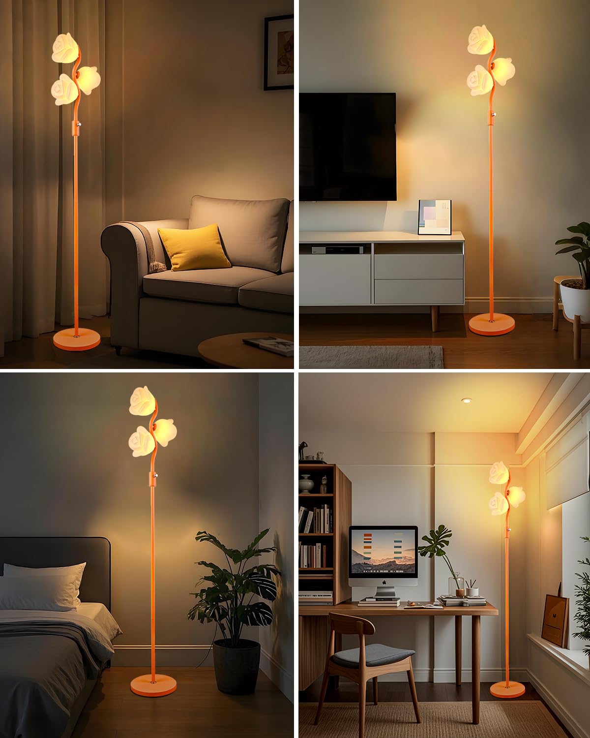 Lightdot 3-Light Flower Floor Lamp Stepless Dimmable Modern Mid Century Standing Lamp With 3Pcs 3000K G9 Bulbs Unique Cute Orang