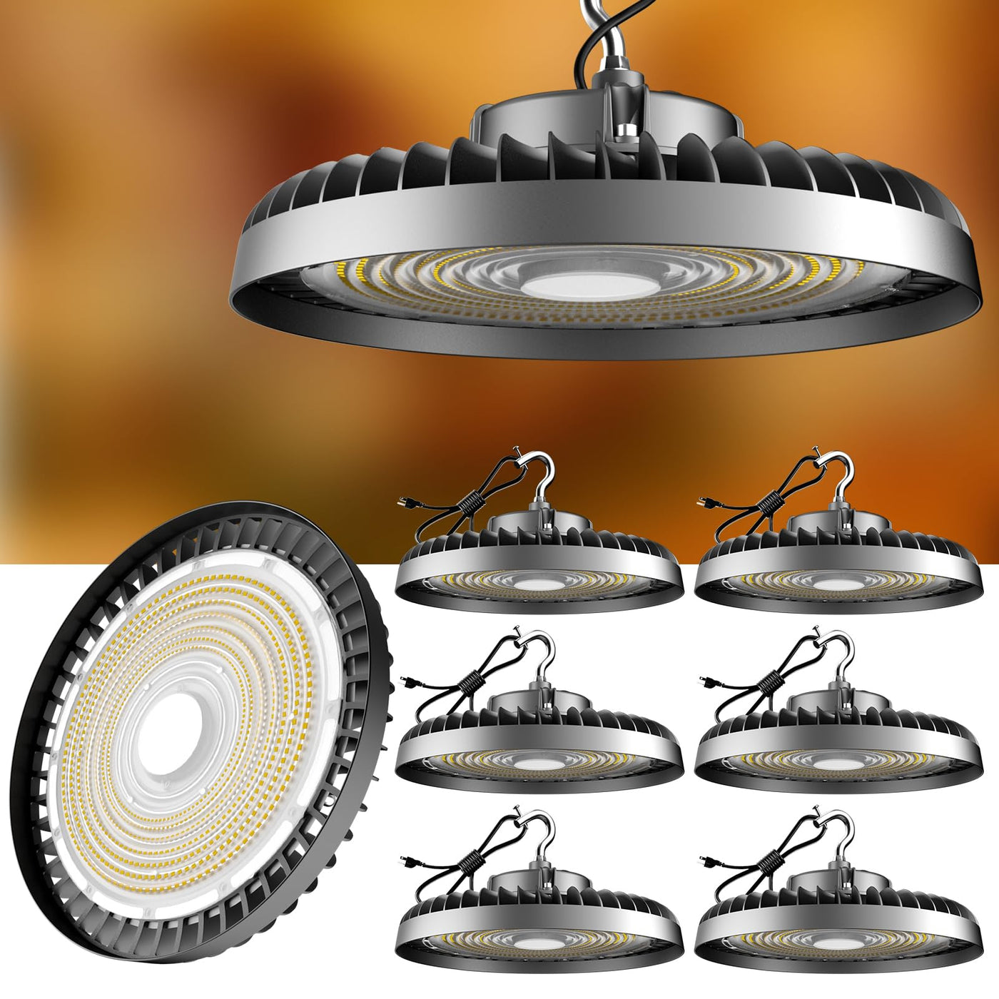 Q: What makes the Lightdot 300W UFO LED High Bay Light more durable than other options?A: The Lightdot High Bay Light features an aluminum housing with a fin design for superior heat dissipation, which significantly extends its lifespan. Additionally, it includes a 2024 upgrade lens that provides uniform lighting without yellow spots, enhancing durability and performance in various settings.