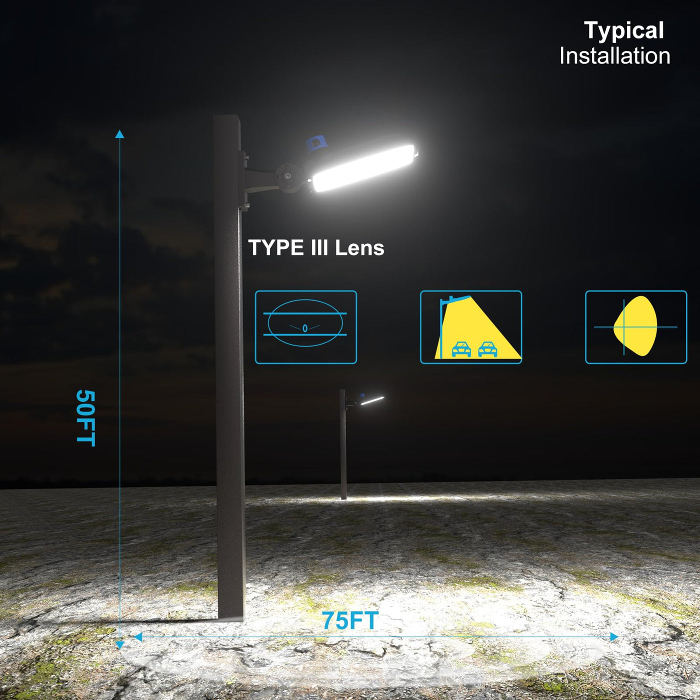 - **Durable & Professional Design**: Constructed with a unique aluminum alloy heat sink and weather-resistant housing, this LED street light remains cool even under heavy use. The professional LED power supply ensures high efficiency and stable performance.