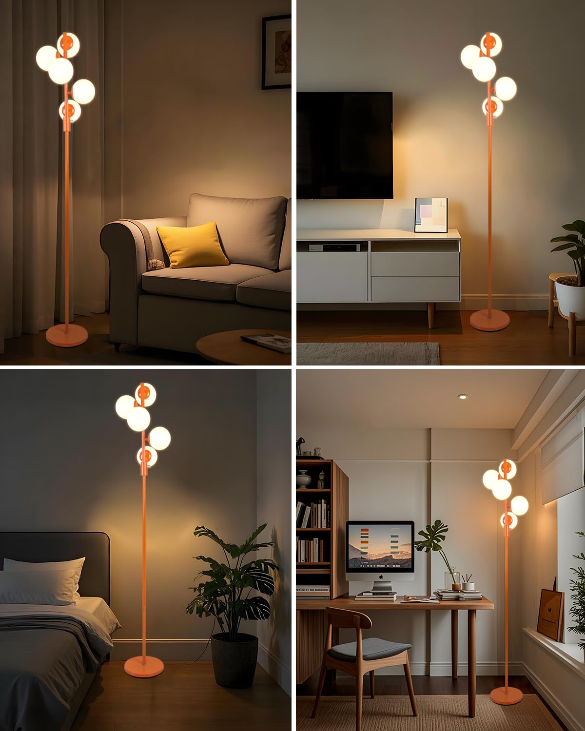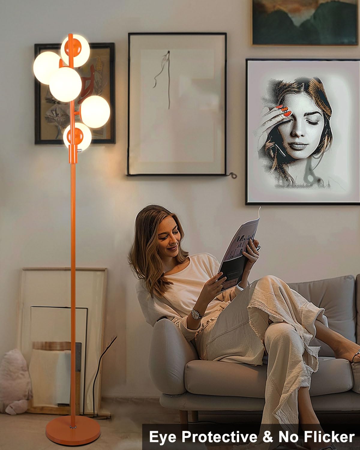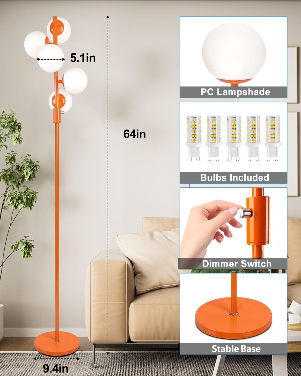 Lightdot 5-Globe Dimmable Globe Floor Lamp Orange Retro Standing Lamps With 5Pcs 3000K G9 Bulbs Stepless Brightness Adjustable M