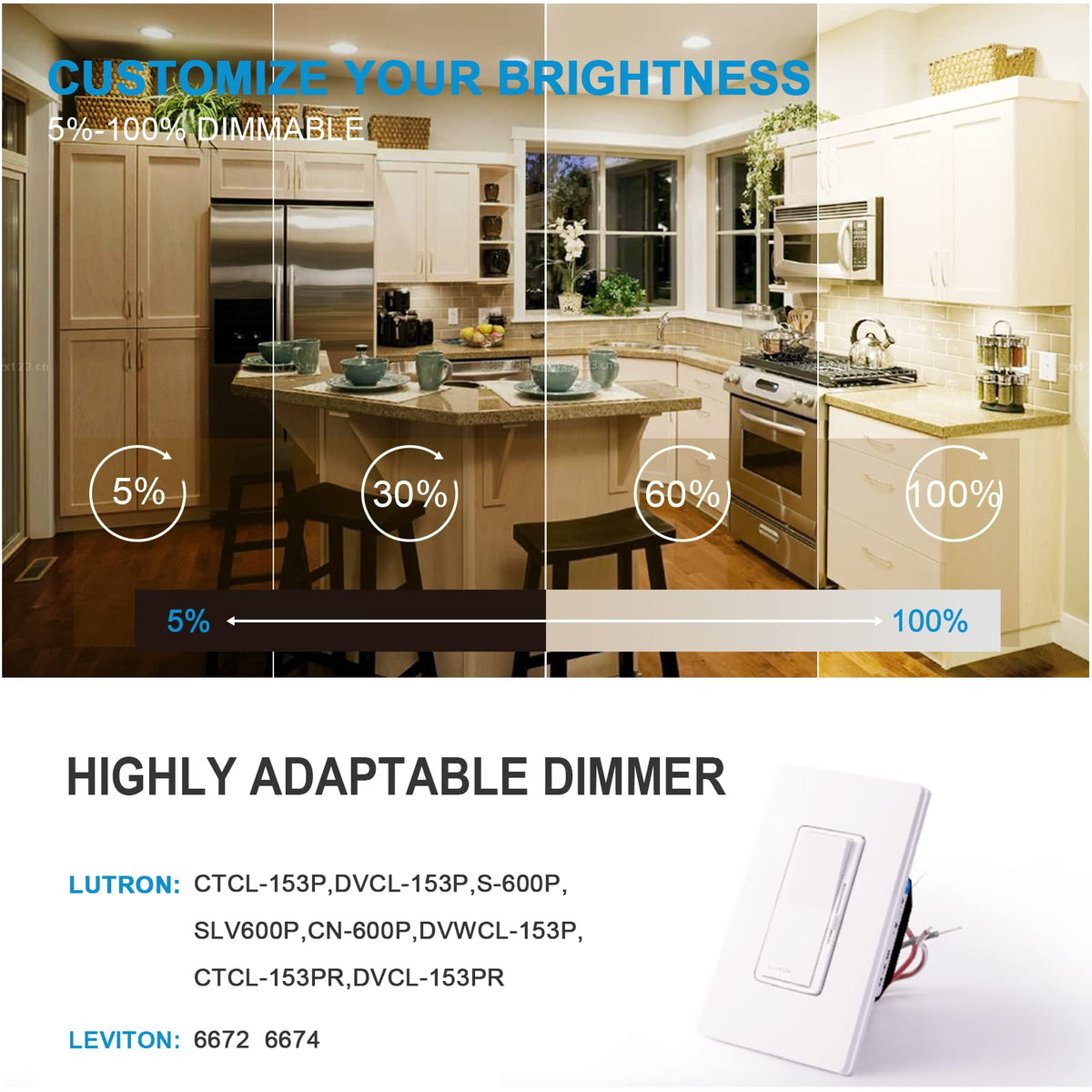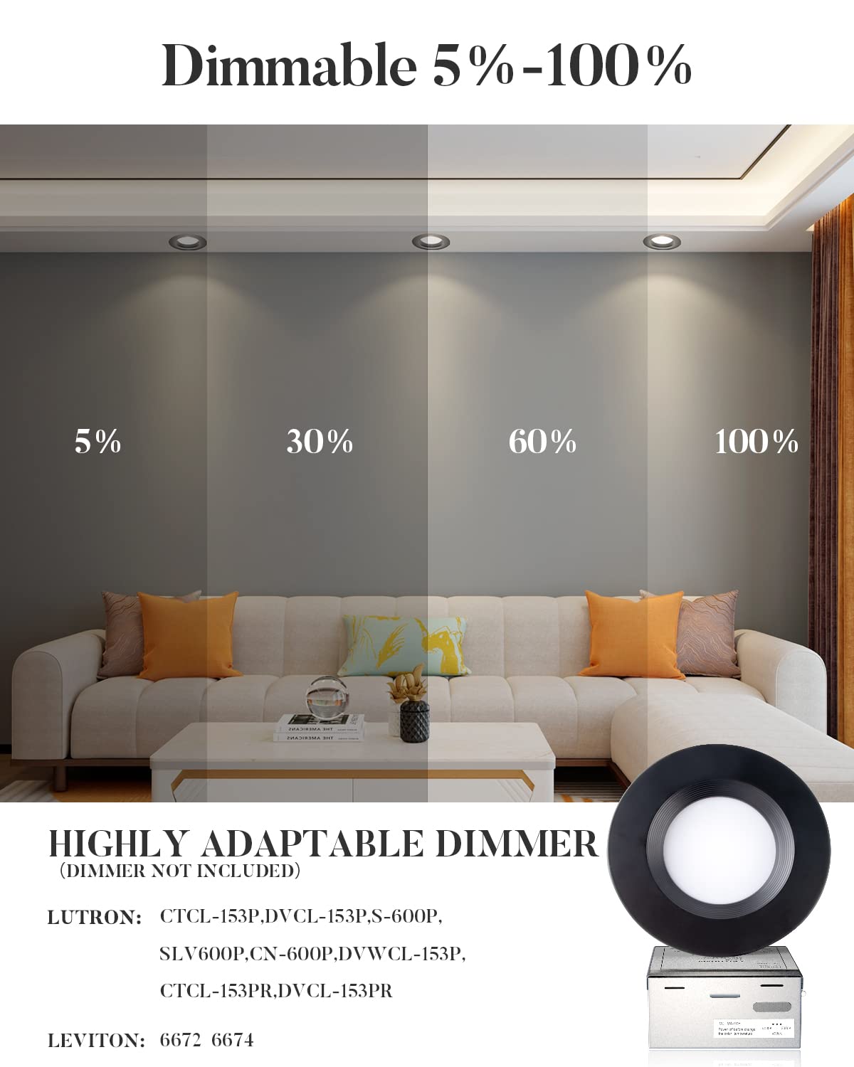 Q: Are these recessed lights dimmable?A: Yes, the Lightdot LED recessed downlights feature 5-100% smooth dimming capabilities and are compatible with most dimmers available on the market, allowing you to adjust the brightness according to your needs.