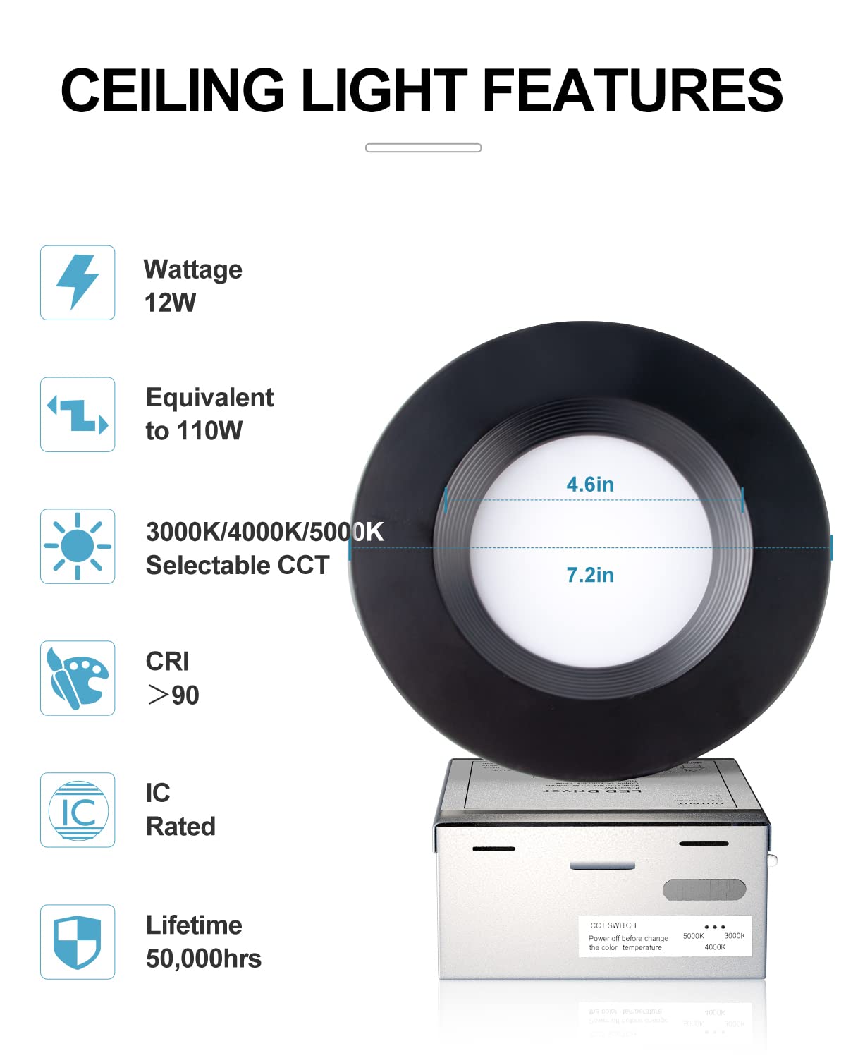 Q: Can these LED recessed lights be used in insulated ceilings?A: Yes, these LED recessed lights are IC rated, meaning they are safe for use in insulated ceilings. They can be in direct contact with insulation without posing a fire risk, ensuring both safety and efficiency.