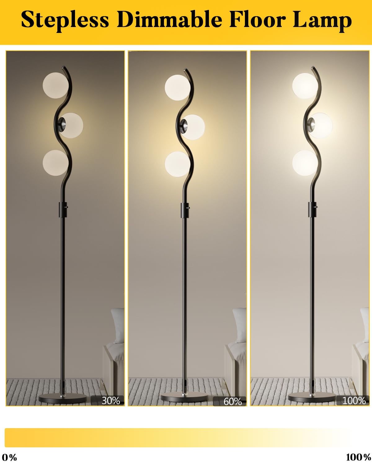 Q: How do I adjust the brightness of the floor lamp?A: The lamp features a smooth rotary knob that allows you to adjust the brightness from 0% to 100%. This stepless dimming capability makes it perfect for various activities, such as reading or creating a cozy atmosphere during movie nights.