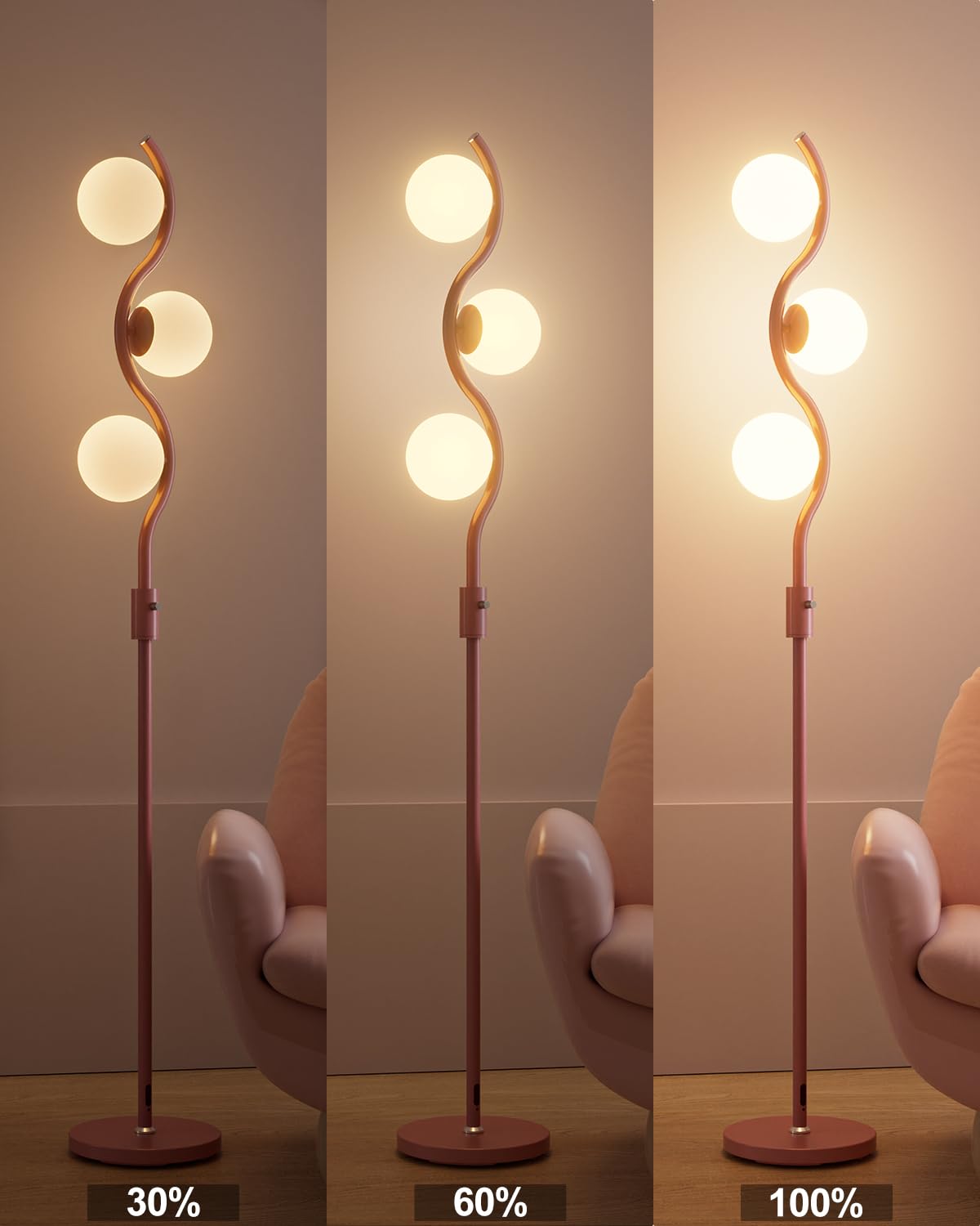 Lightdot 60In Dimmable Pink Floor Lamp Mid Century Standing Lamps With 3Pcs G9 3000K Warm White Bulbs Stepless Dimming Globe Mod