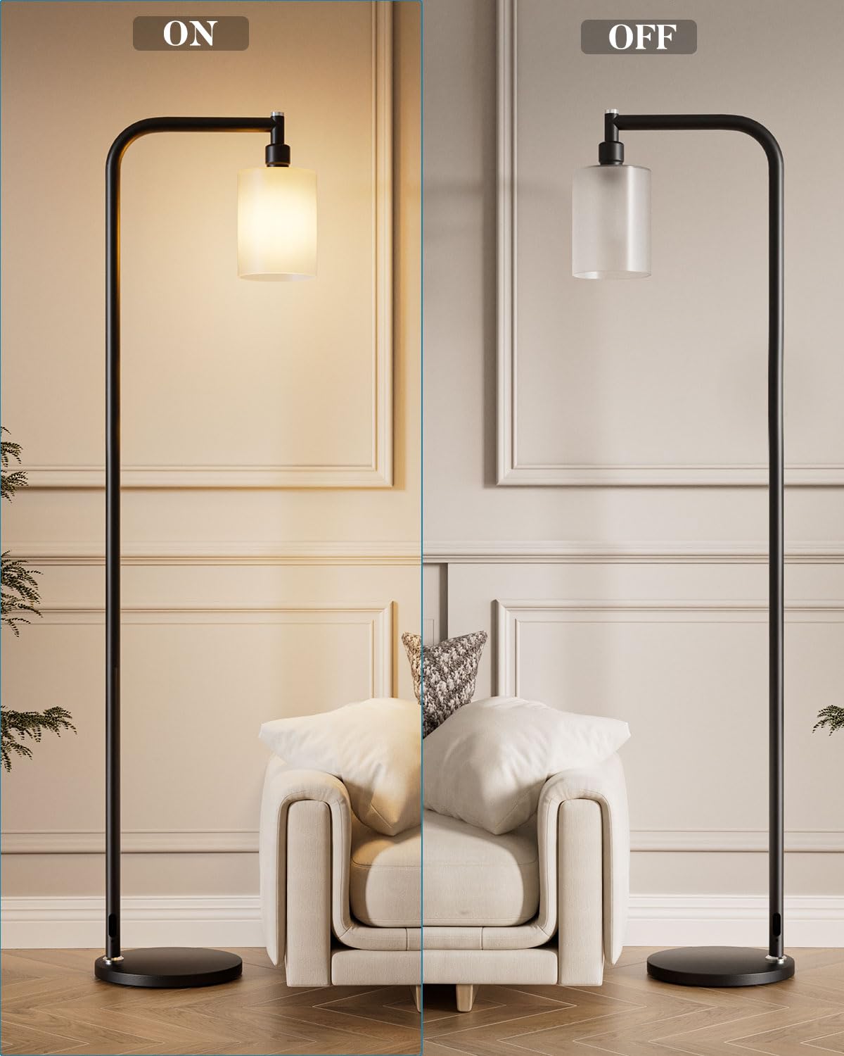 Q: What materials are used in the construction of the floor lamp?A: The Lightdot 63IN Industrial Floor Lamp features a combination of metal for the lamp pole and a clear glass lampshade, which provides excellent light transmission. This blend of materials contributes to its modern and stylish look.