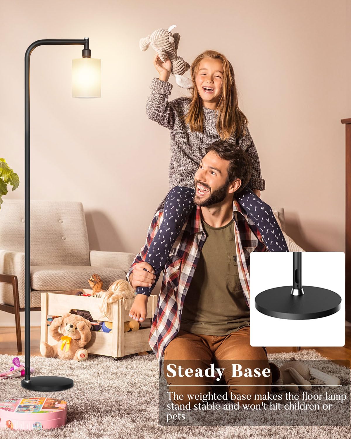 Lightdot 63In Industrial Floor Lamp, Black Modern Standing Lamps With Clear Glass Lampshade, Farmhouse Floor Lamp For Living Roo