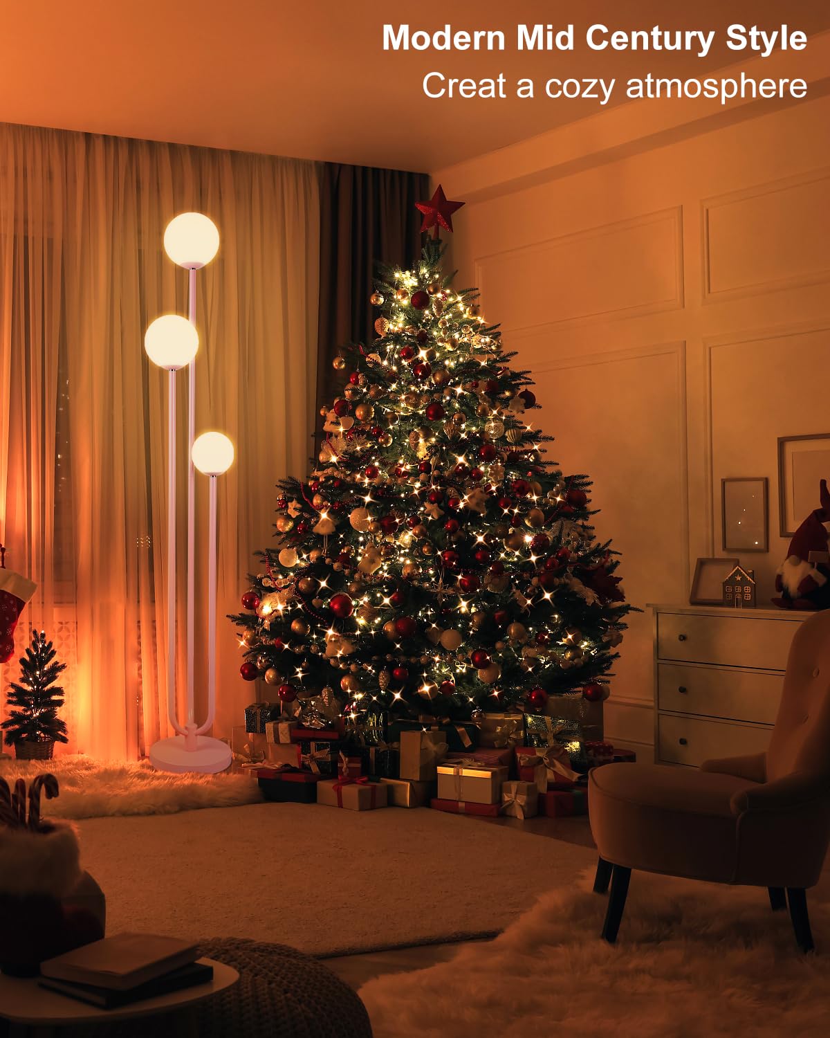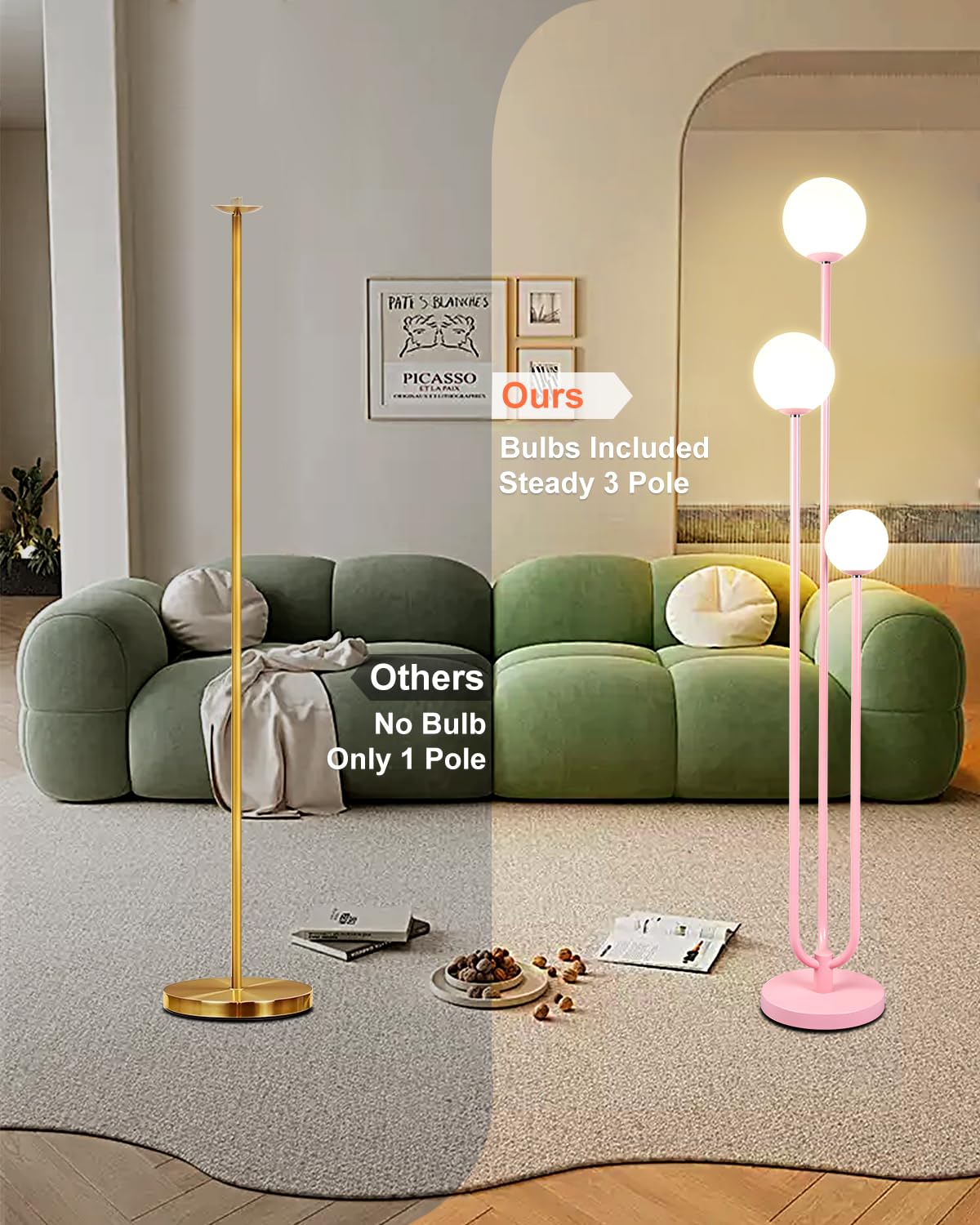 Lightdot 63In Pink Floor Lamp Mid Century Modern Floor Lamp With 3 Globe Soft Warm White 3000K Bulbs, 3 Lights U-Style Standing