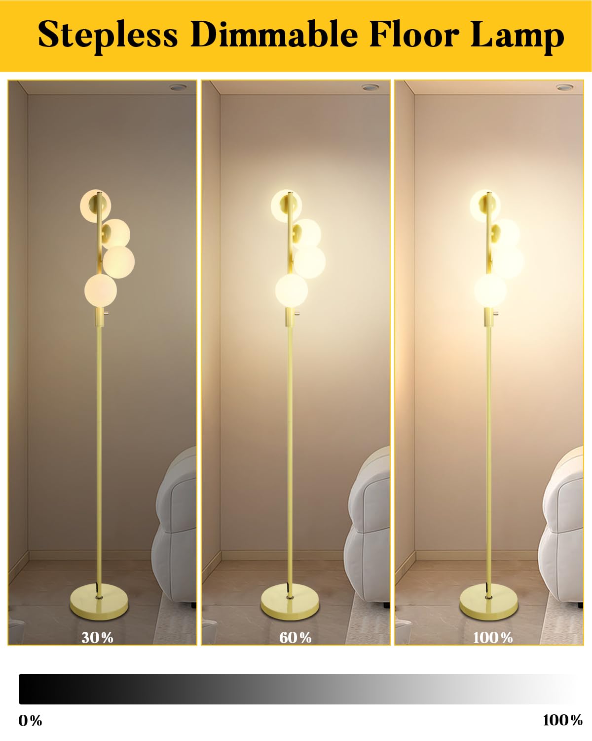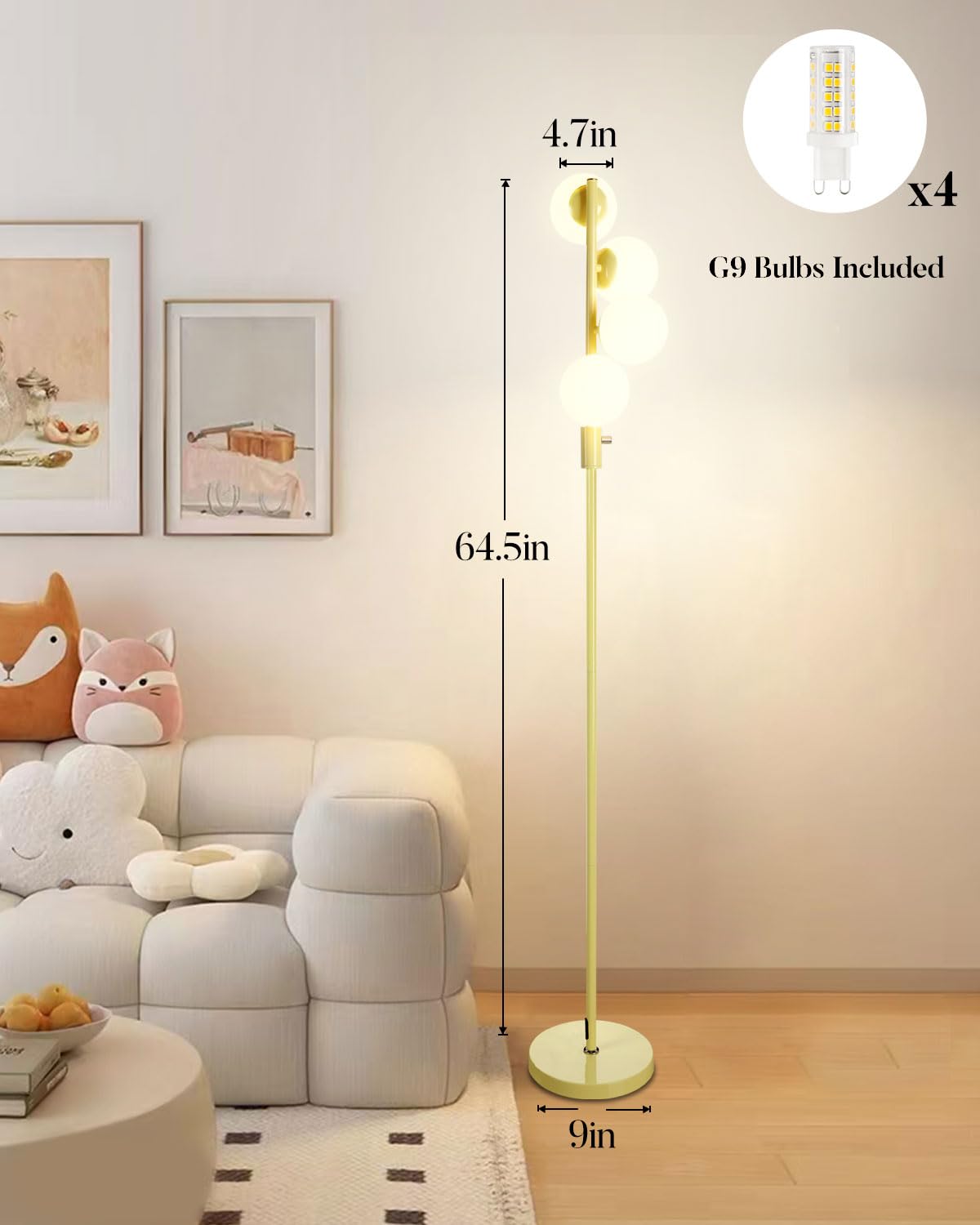 Lightdot 64In Dimmable (Brightness Adjustable) Globe Floor Lamp, Standing Lamps With 4Pcs 3000K G9 Bulbs Soft Warm White Eye Car