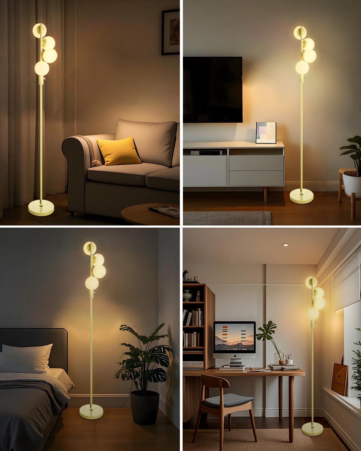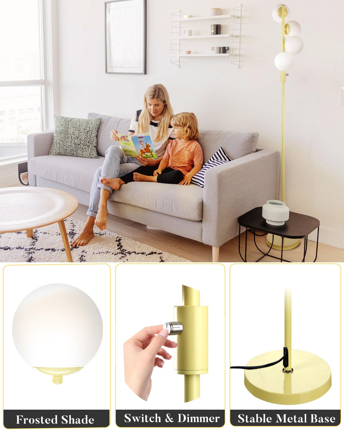 4-Globe Floor Lamp With An Eye Catching Design Which Easy Fits With Many Home Decors Such As Mid Century, Modern, Contemporary, Retro, Rustic, Boho, Farmhouse Etc. The Entire Light Fixture Is Equipped With Metal And Weighted Lamp Base, Make It Safety When Pets And Kids Play Around.