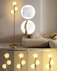 Lightdot 65In Dimmable Gold Floor Lamp For Living Room, Mid Century Modern Tall Standing Lamps With 1 Flower & 2Globe Lampshades