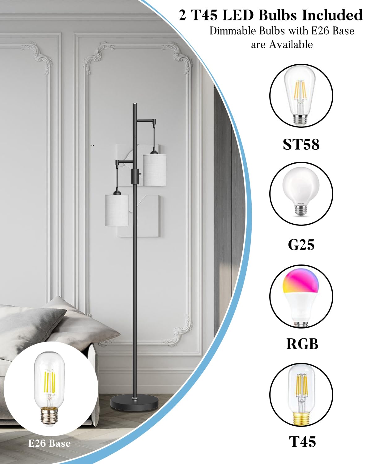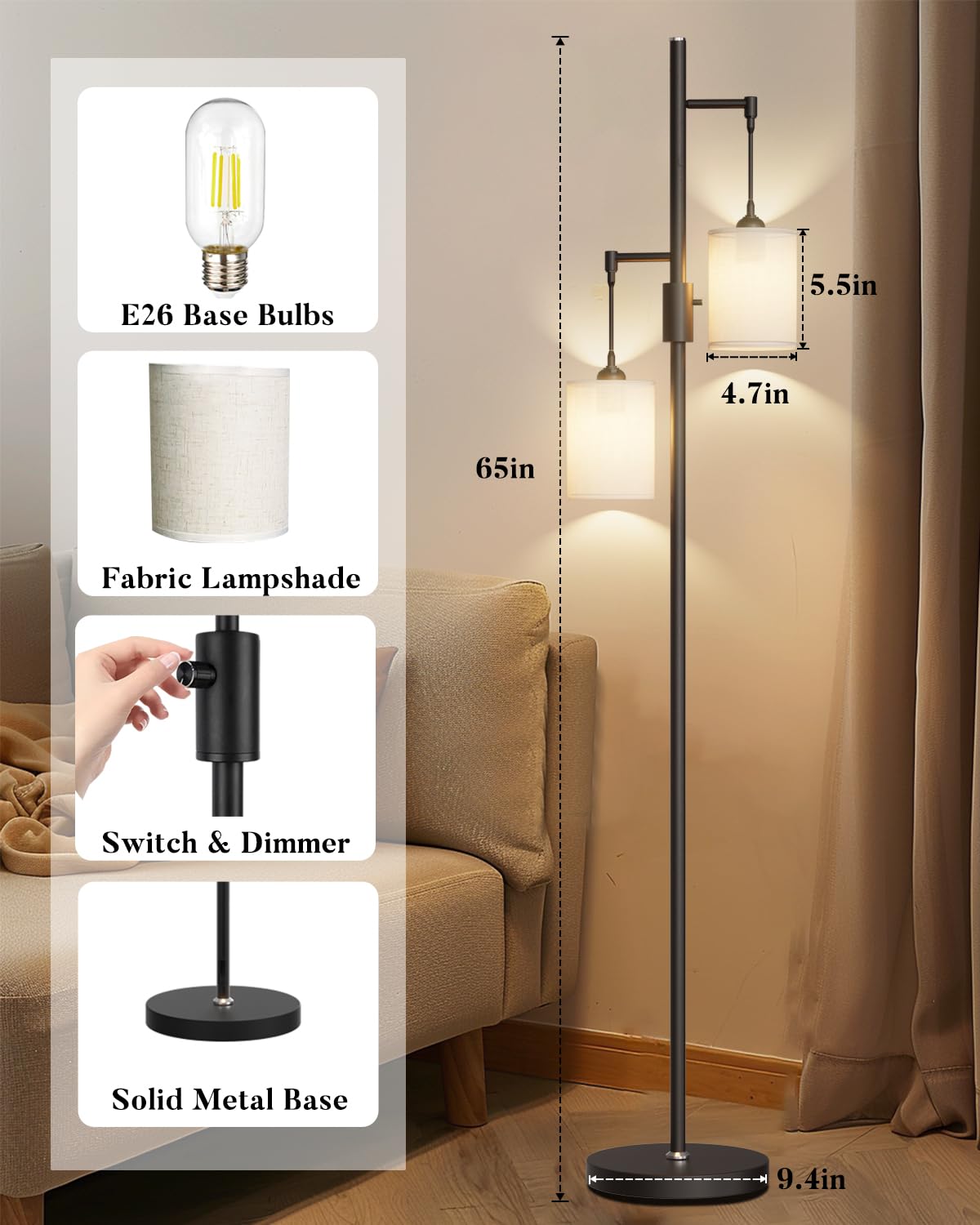 Illuminate Your Space With The Sophisticated Charm Of Lightdot 2-Light Floor Lamp. Standing At 65 Inches Tall, This Elegant Lamp Features Two E26 Base Lights And A Chic Fabric Lampshade, Making It A Perfect Addition To Any Room. With Its Adjustable Dimming Capabilities From 5% To 100%, You Can Effortlessly Set The Mood For Any Occasion. The 87-Inch Power Cable Provides Flexibility In Placement, Ensuring This Lamp Fits Seamlessly Into Your Home D Cor. Our Floor Lamp Has An Eye Catching Design Which Easy Fits With Many Home Decors Such As Mid Century, Modern, Contemporary, Retro, Rustic, Boho, Farmhouse Etc. The Entire Light Fixture Is Equipped With Metal And Weighted Lamp Base, Make It Safety When Pets And Kids Play Around.