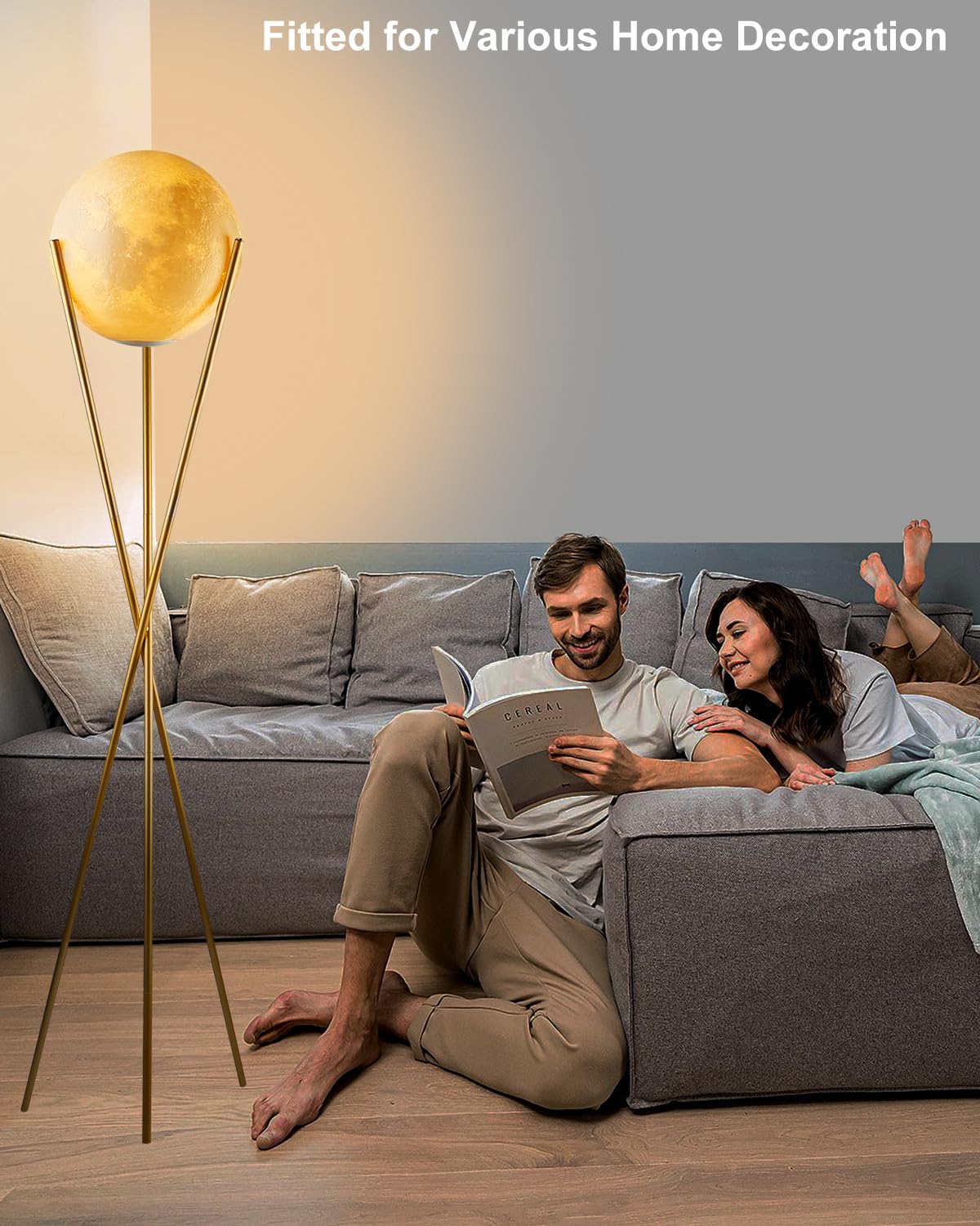 Lightdot 66'' Globe Moon Floor Lamp For Living Room Modern Gold Tripod Floor Lamp With 3D Printing Frosted Shade E26 300K Bulbs