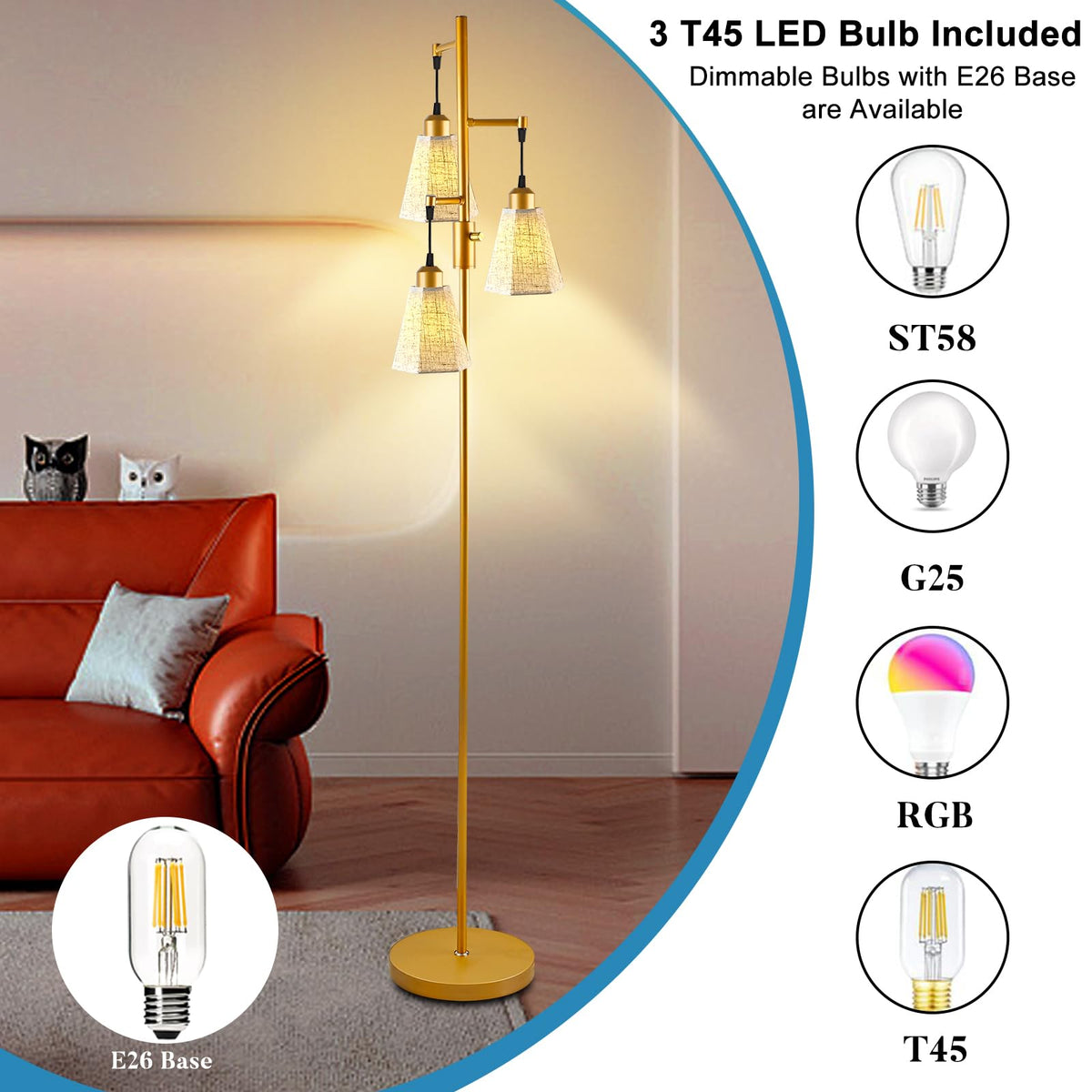 Q: What type of bulbs does the Lightdot 68IN Dimmable Floor Lamp use?A: The Lightdot 68IN Dimmable Floor Lamp comes with LED E26 bulbs included, providing efficient and long-lasting illumination.
