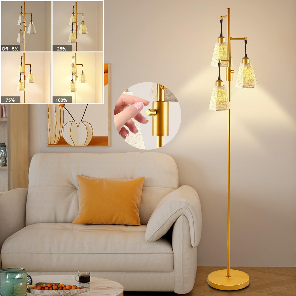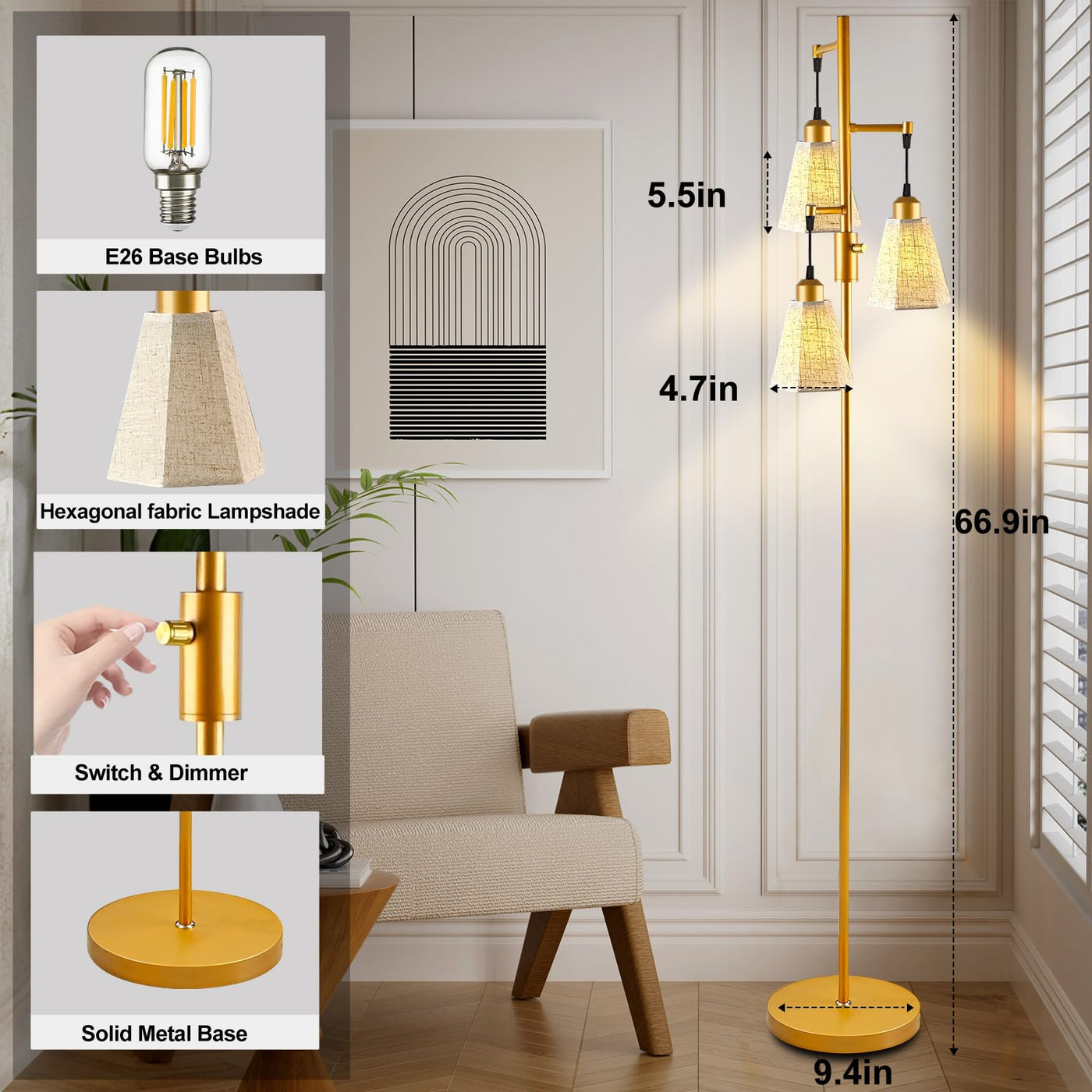 Lightdot 66In Led Floor Lamp With Patterned Lampshade, Vintage Standing Lamps With E26 Bulb Included & Fabric Shade, Modern Tall