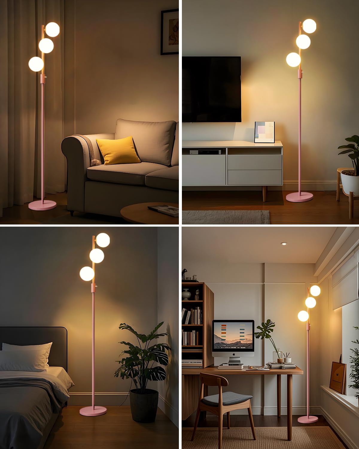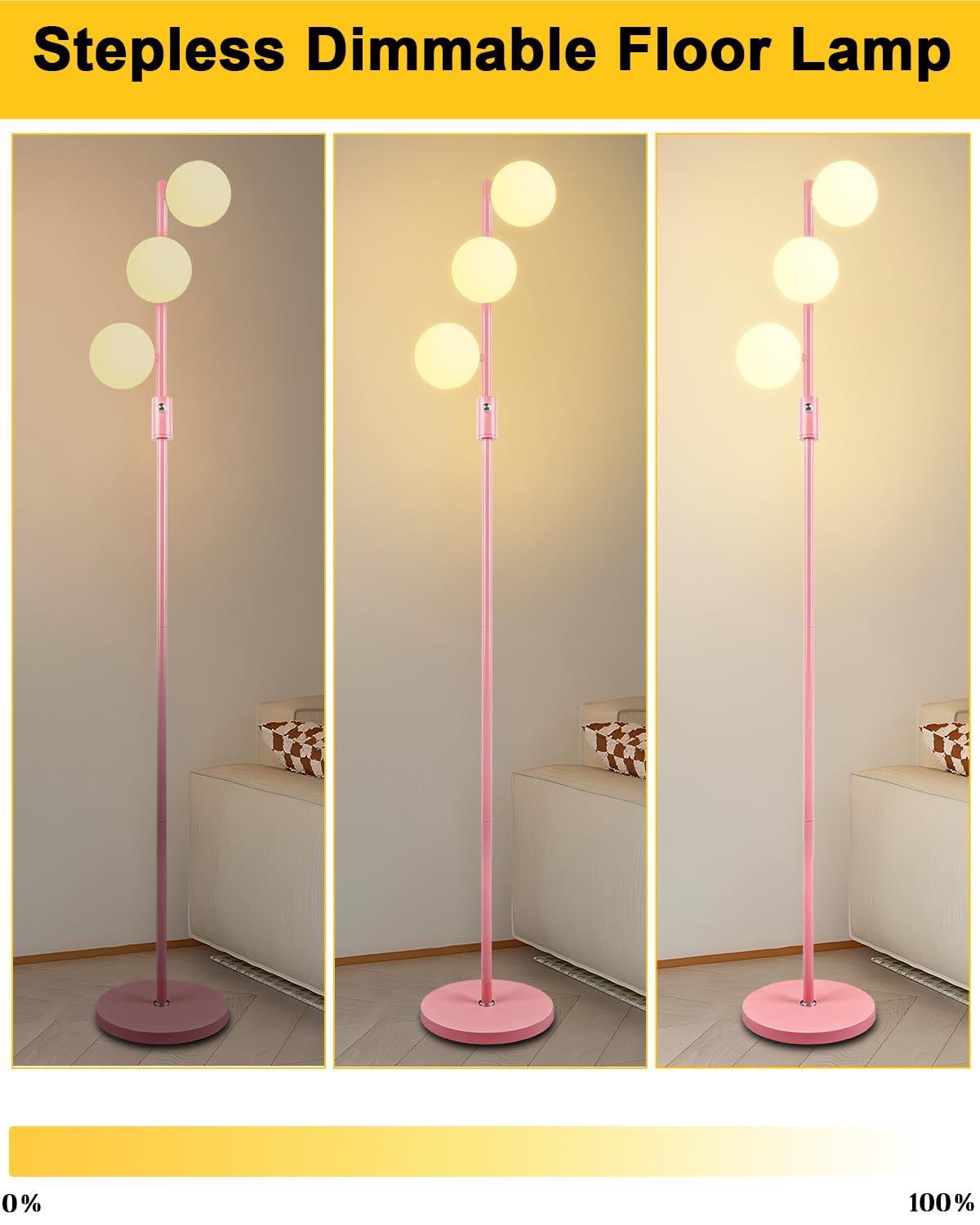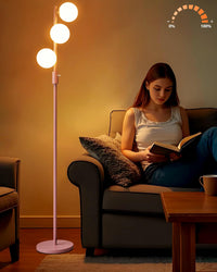 Lightdot Dimmable (Brightness Adjustable) Globe Floor Lamp, Pink Pole Standing Lamps With 3Pcs 3000K G9 Bulbs, Mid Century Moder