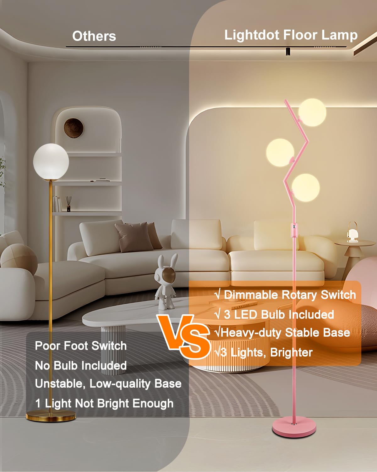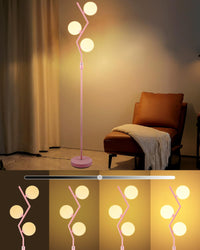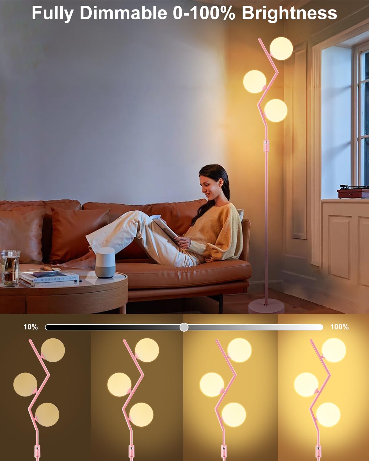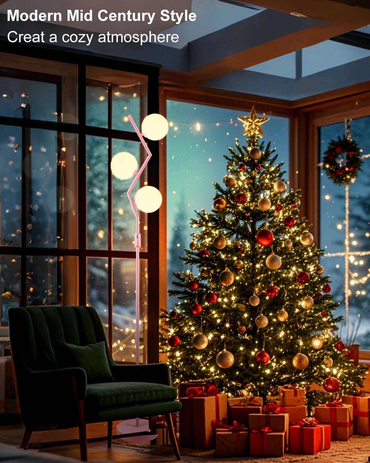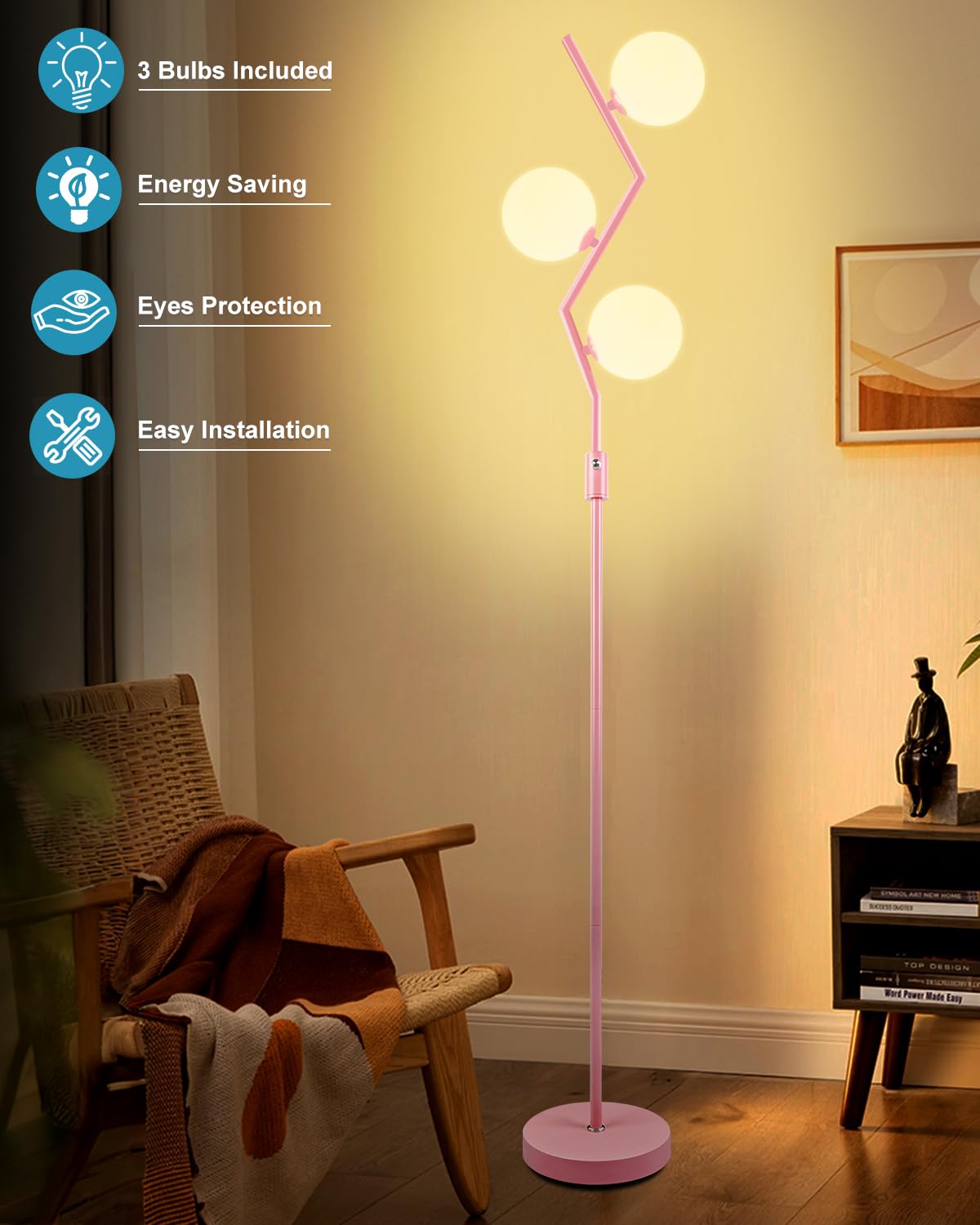 Lightdot Dimmable (Brightness Adjustable) Pink Floor Lamp, Mid Century Standing Lamps With 3 Globe Soft Warm White Eye Care 3000
