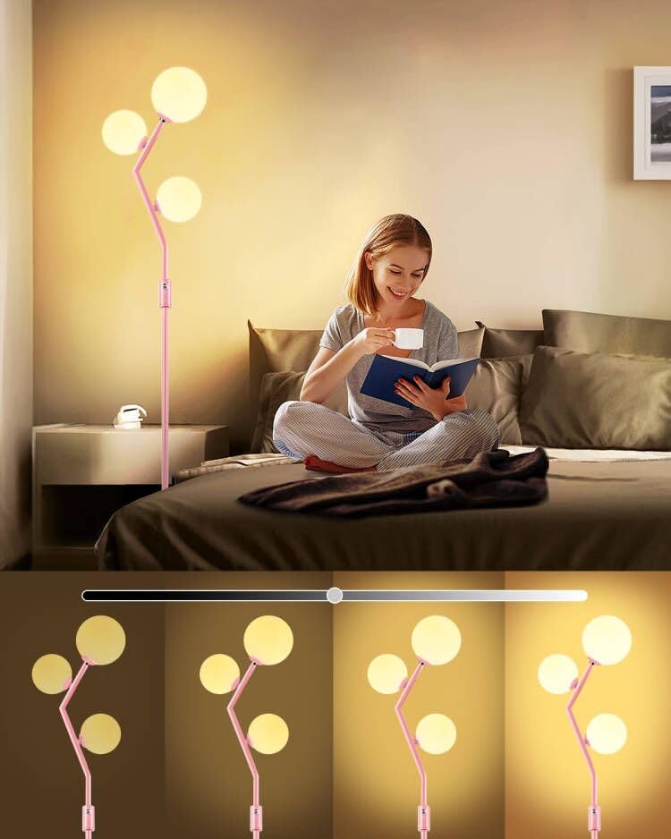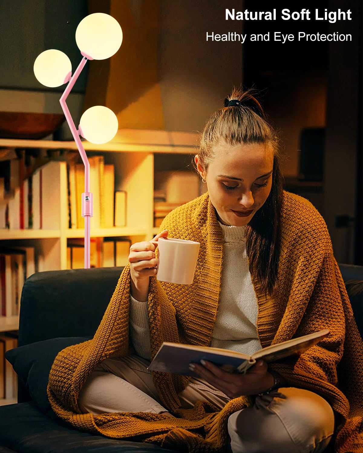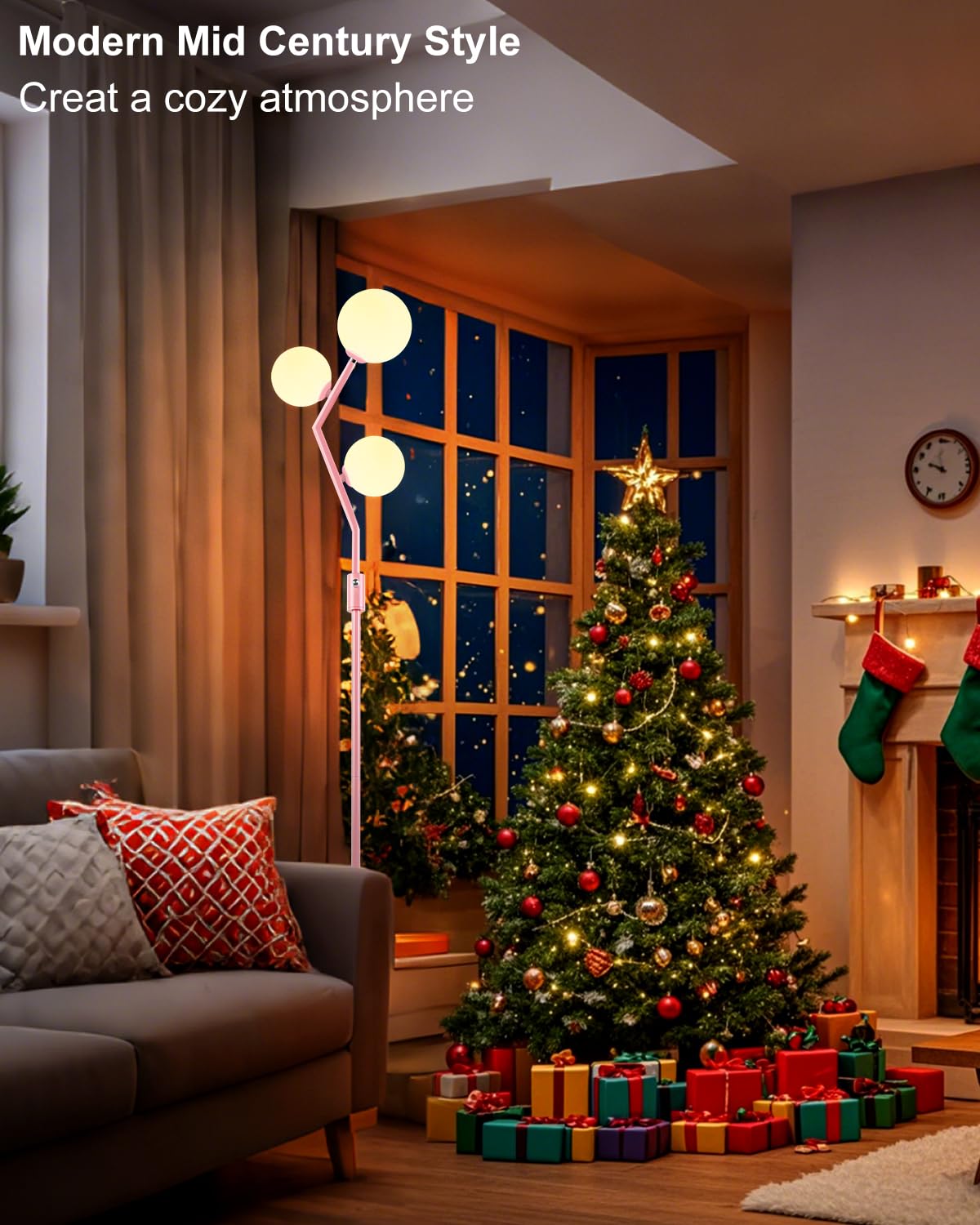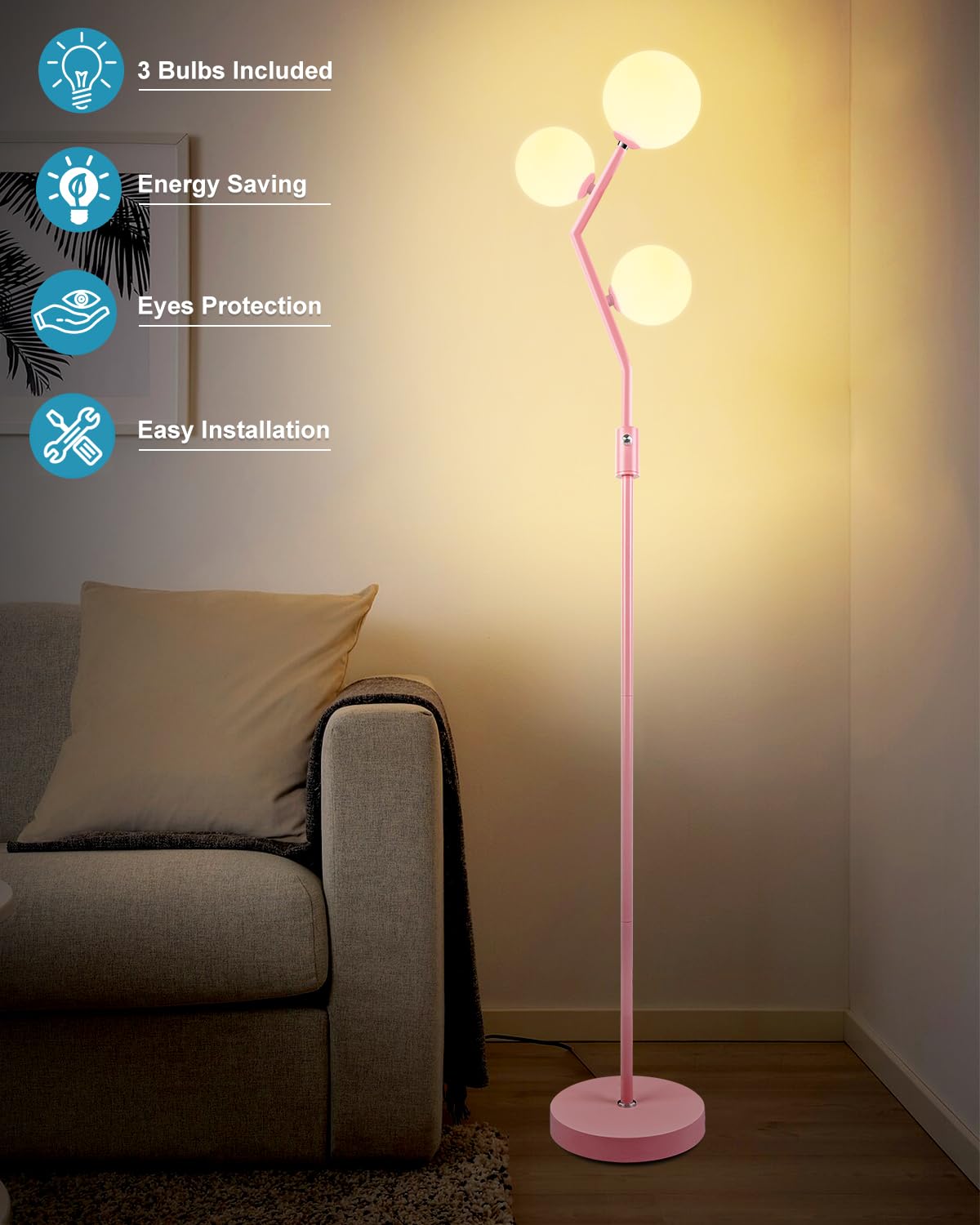 3 Globe Tree Floor Lamp, Dimmable Pink Standing Lamps With 3Pcs 3000K G9 Bulbs, Mid Century Modern Floor Lamp For Living Room