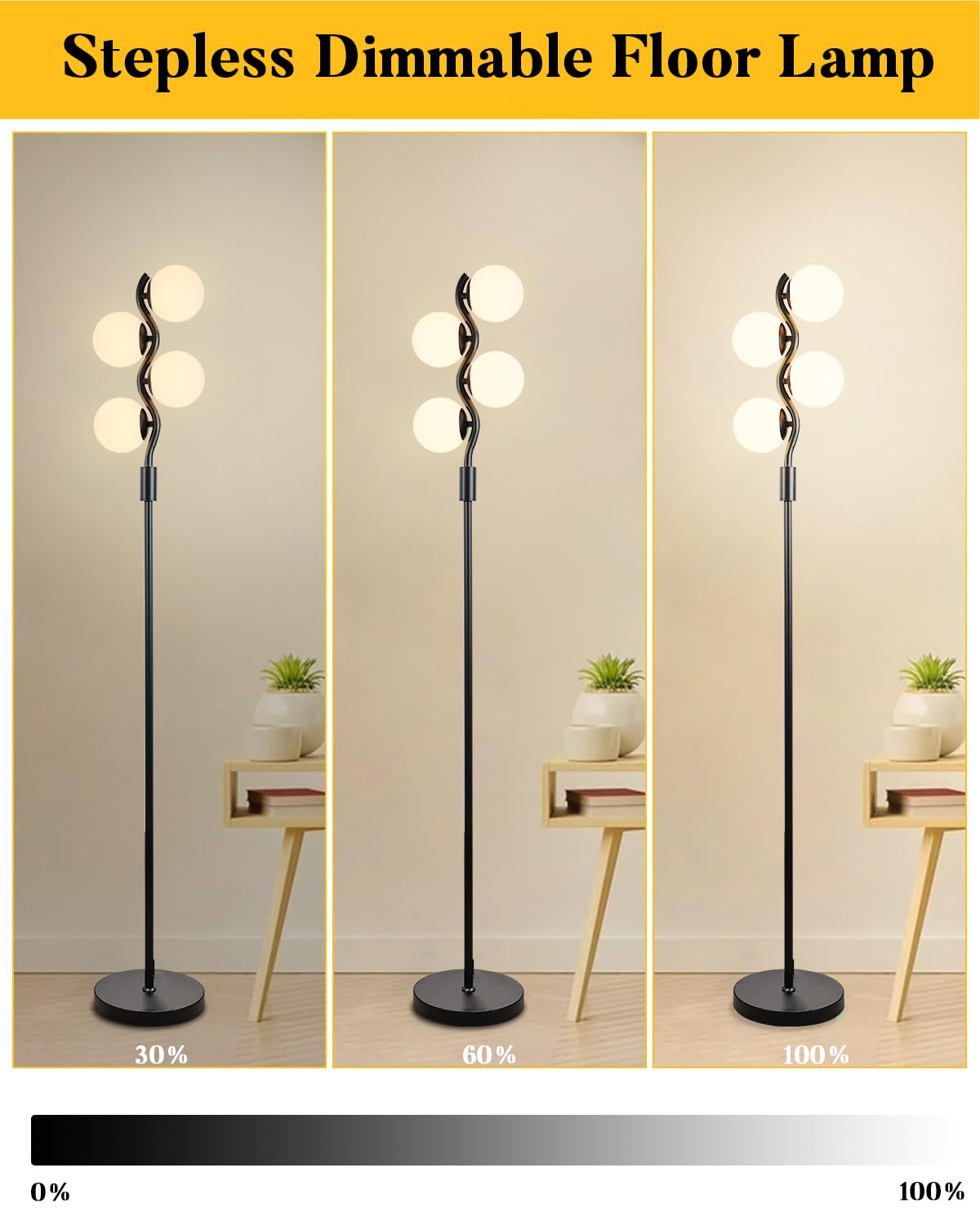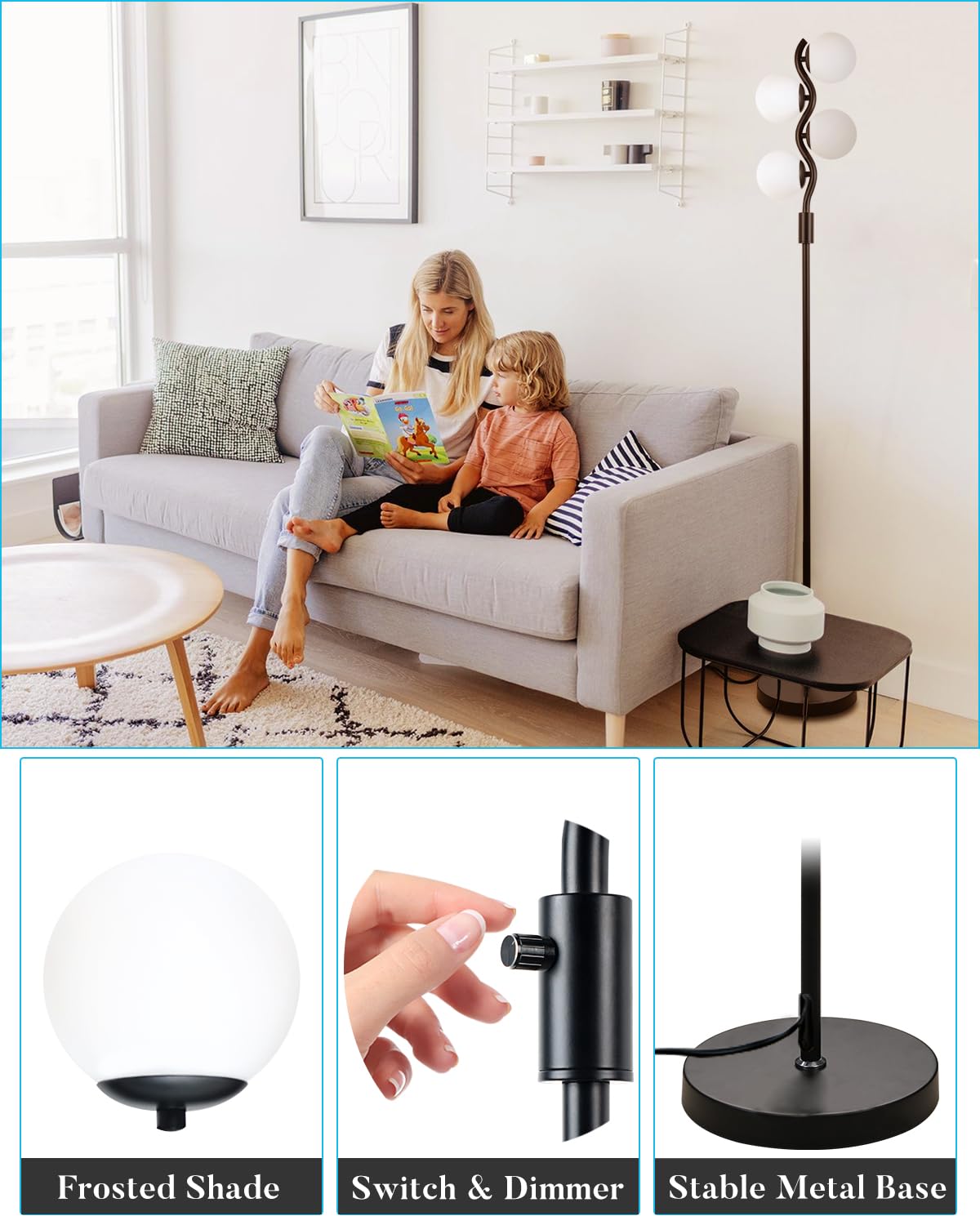 4-Globe Black Floor Lamp With An Eye Catching Design Which Easy Fits With Many Home Decors Such As Mid Century, Modern, Contemporary, Retro, Rustic, Boho, Farmhouse Etc. The Entire Light Fixture Is Equipped With Metal And Weighted Lamp Base, Make It Safety When Pets And Kids Play Around.