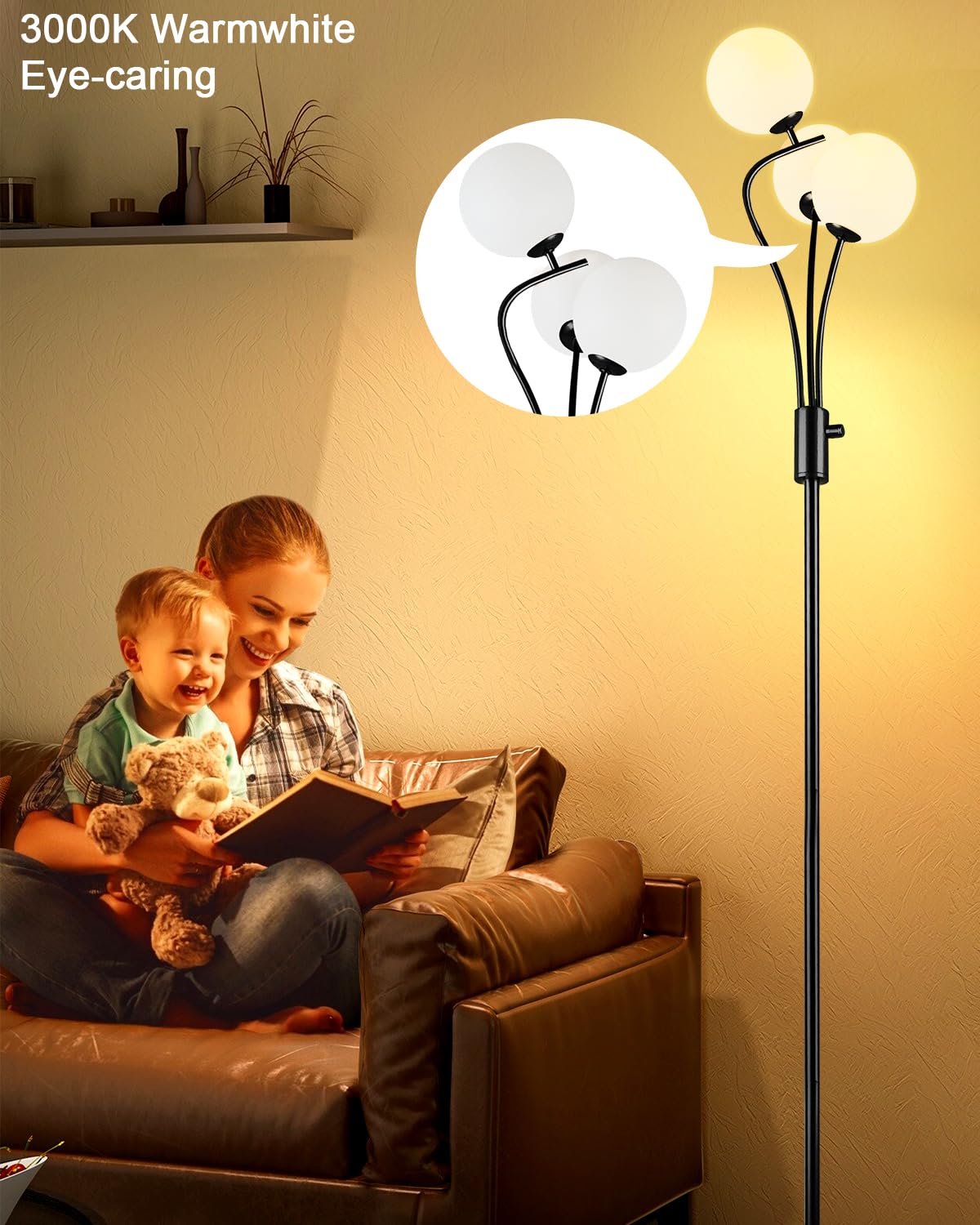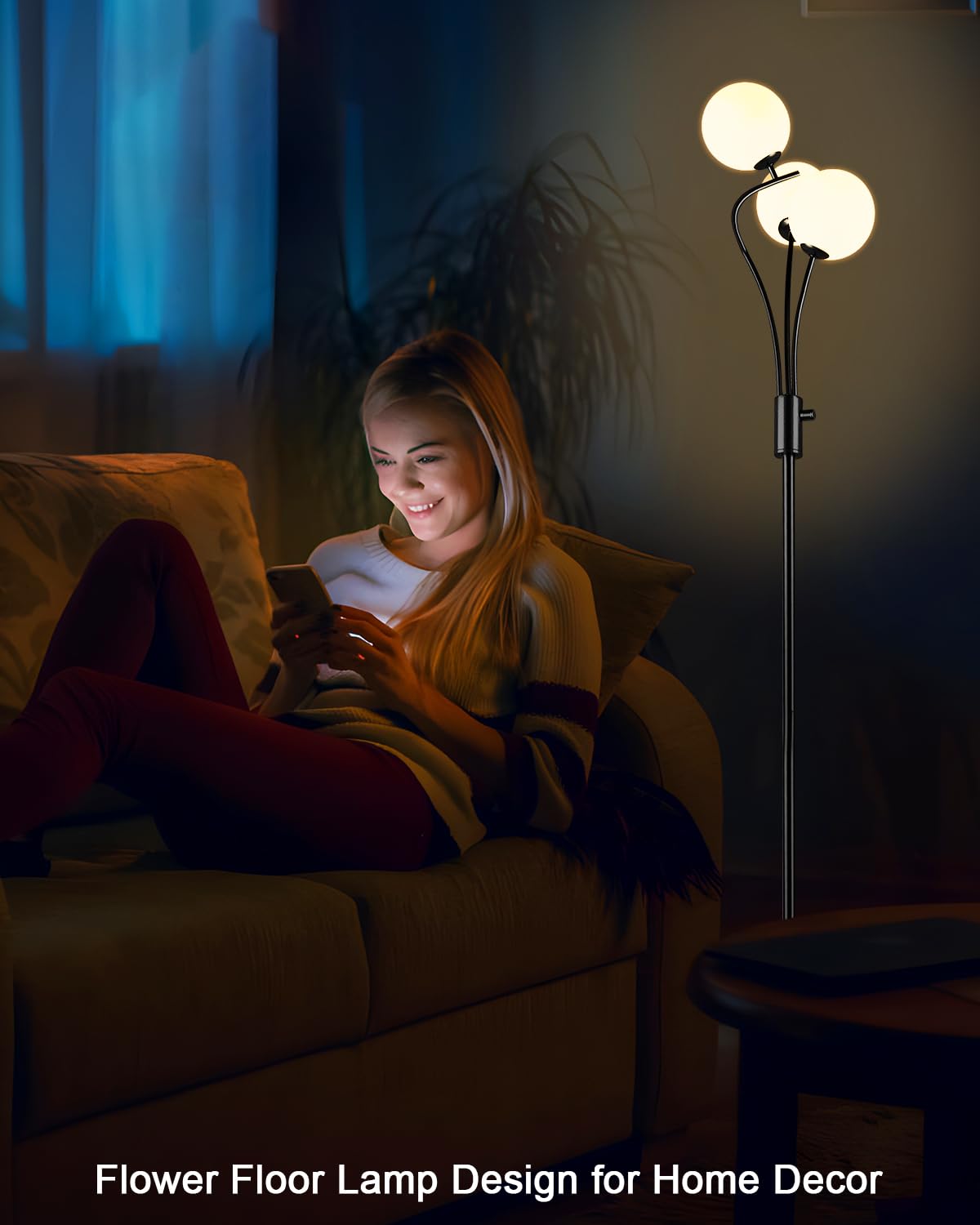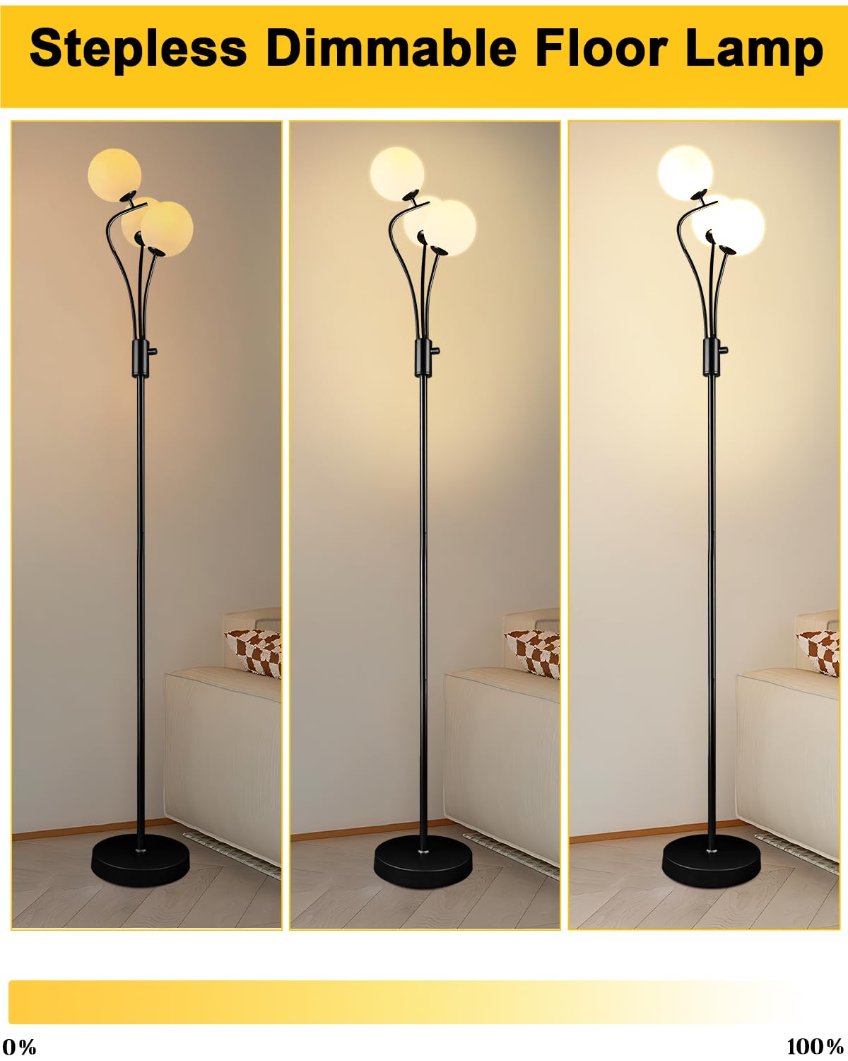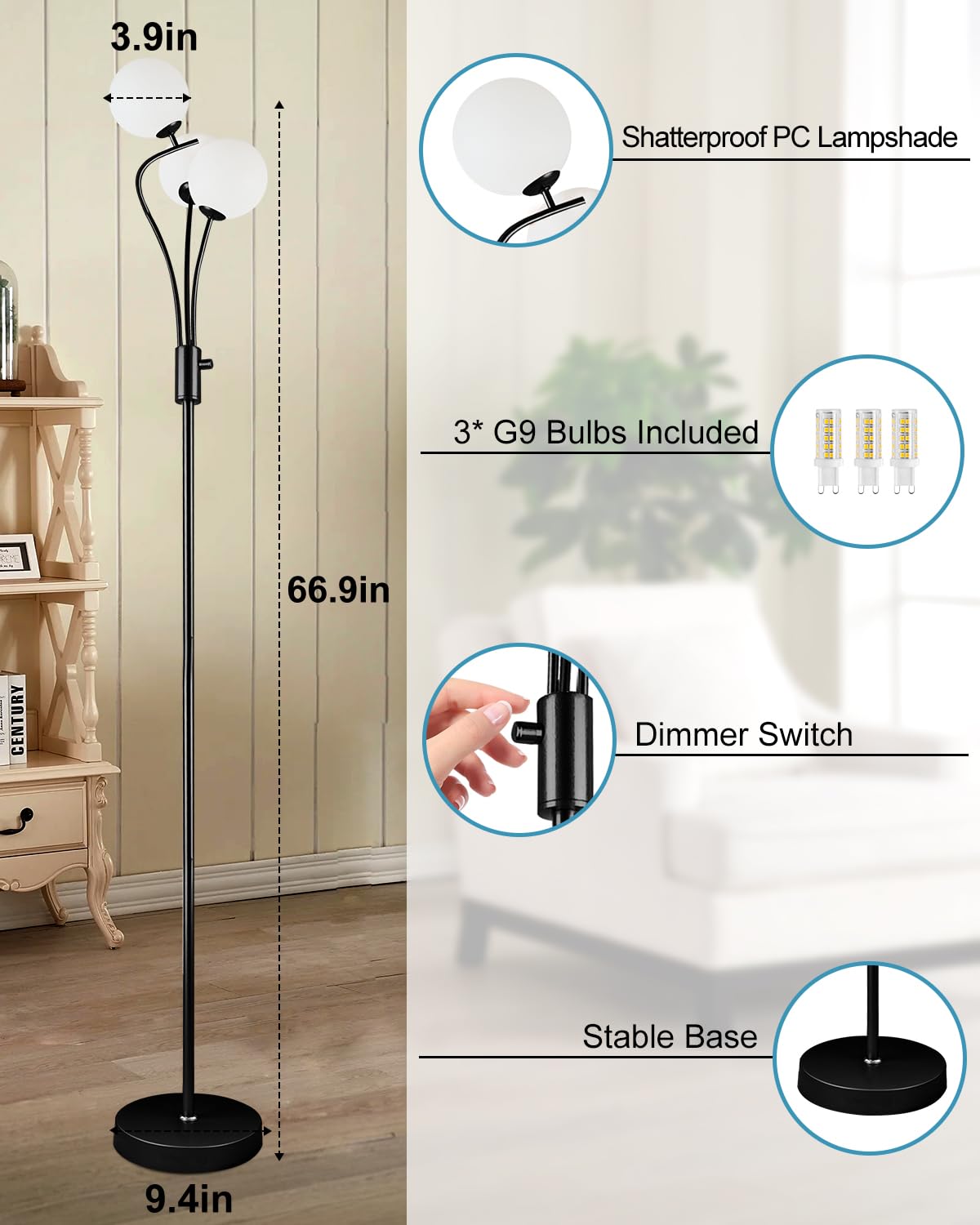Lightdot Globe Standing Lamps With 3Pcs 3000K G9 Bulbs Stepless Black Dimmable Floor Lamp With Stable Base 3-Lights Modern Desig