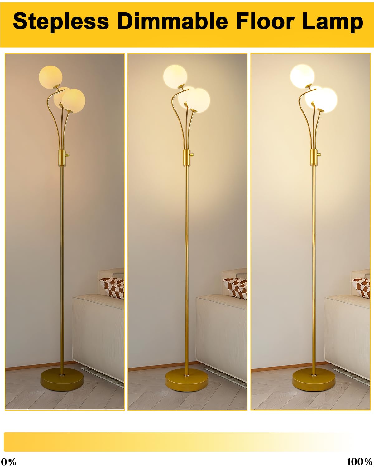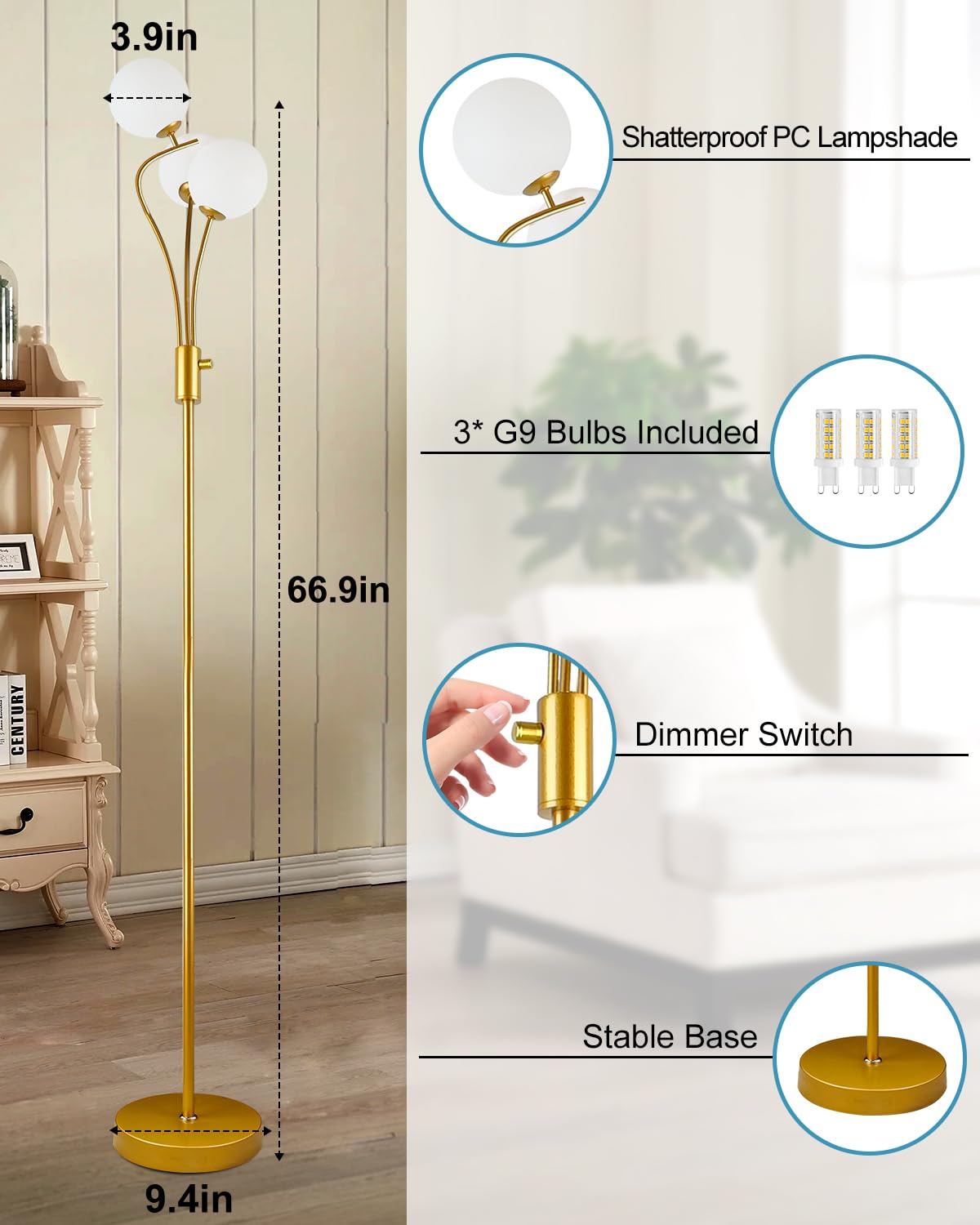 Lightdot Globe Standing Lamps With 3Pcs 3000K G9 Bulbs Stepless Dimmable Gold Floor Lamp With Stable Base 3-Lights Modern Design