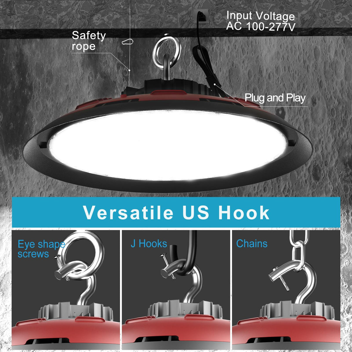 Q: Does this light come with installation hardware?A: Yes, the Lightdot ETL Listed UFO High Bay LED Light comes with a U-bracket, US hook, safety wire, and all necessary cables, making installation straightforward and tool-free.