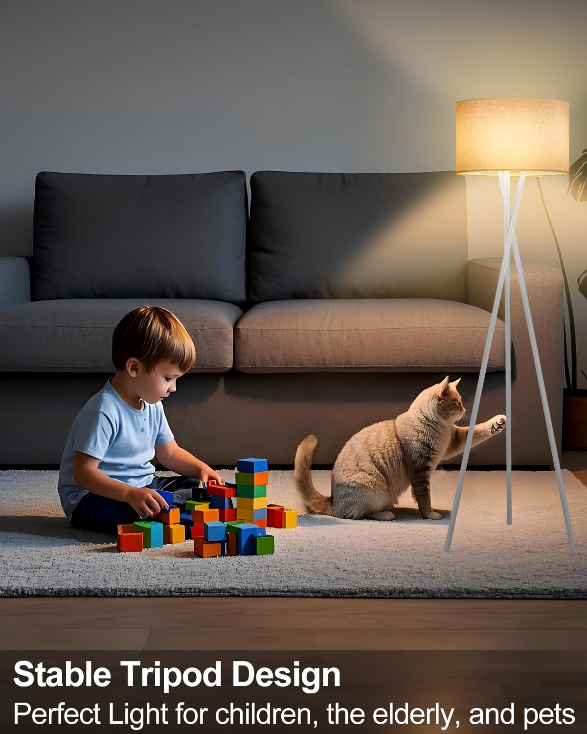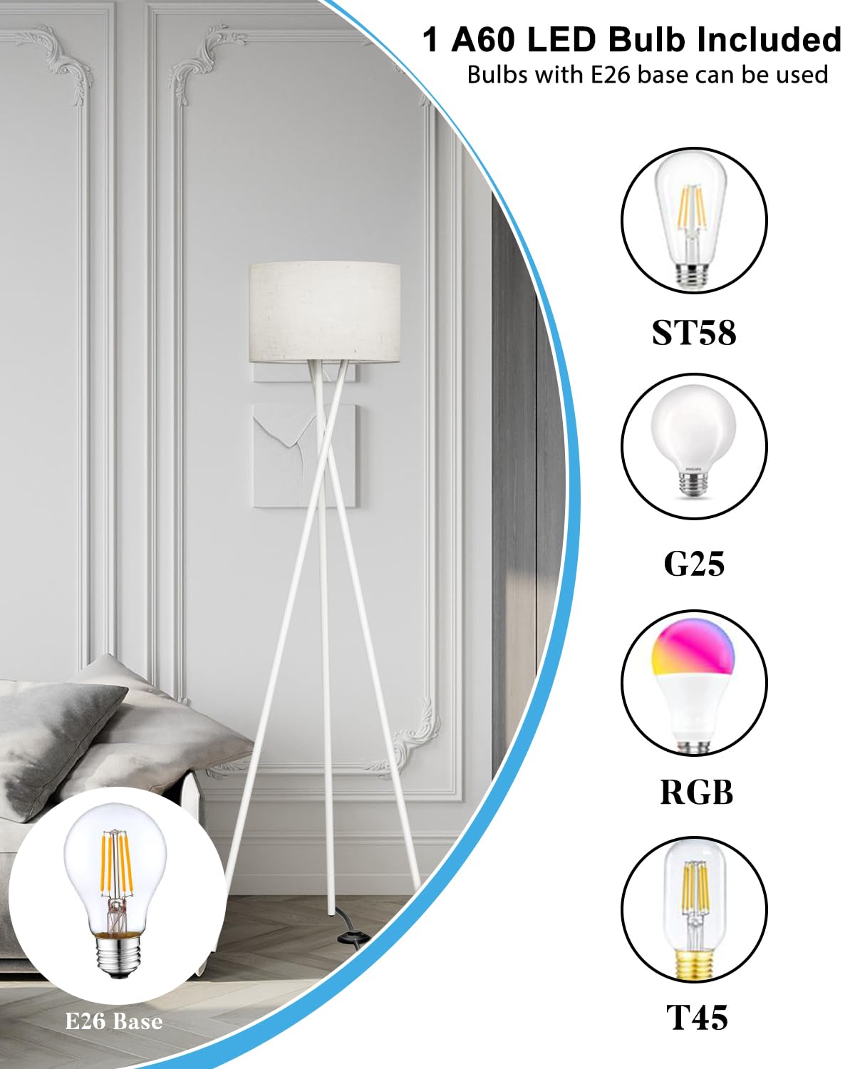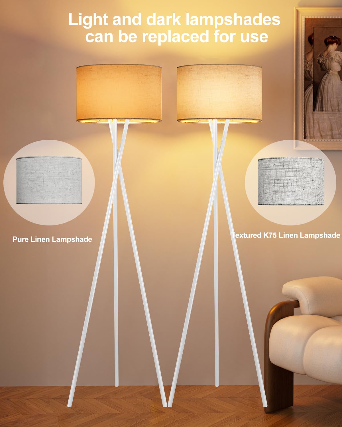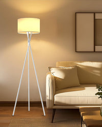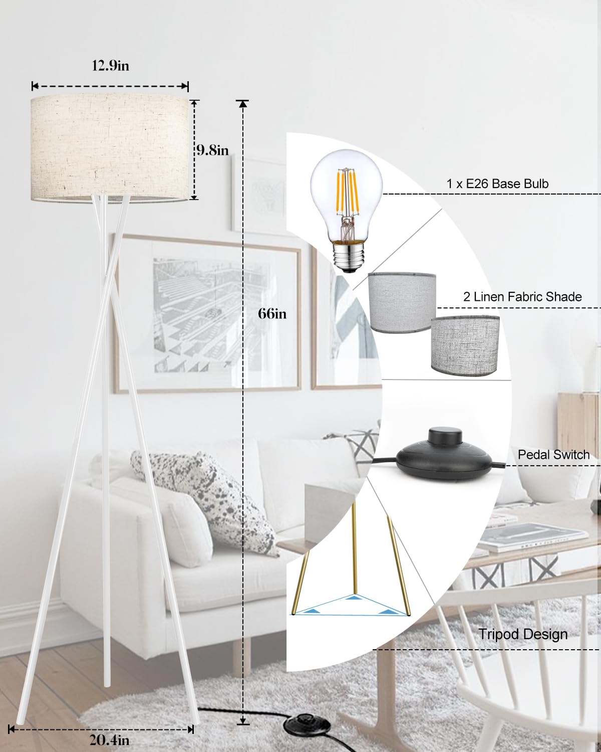 Lightdot White Tripod Floor Lamp, Modern Floor Lamp For Living Room, Standing Lamp With Linen Shade, E26 Bulb Included, 66'' Tal