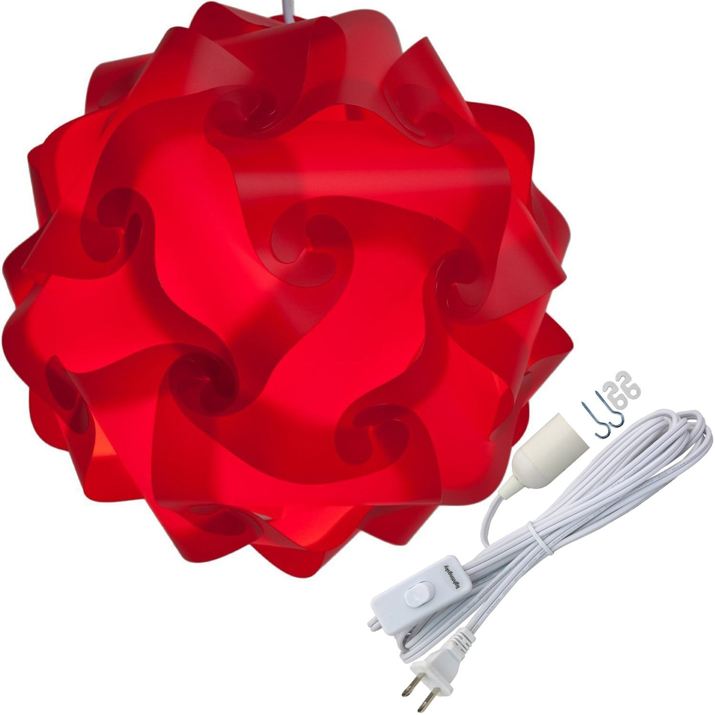Lightingsky Diy Iq Jigsaw Puzzle Lamp Shade Ceiling Pendant Lampshade Kit With 15 Feet Hanging Cord (Red, M-10 Inch)