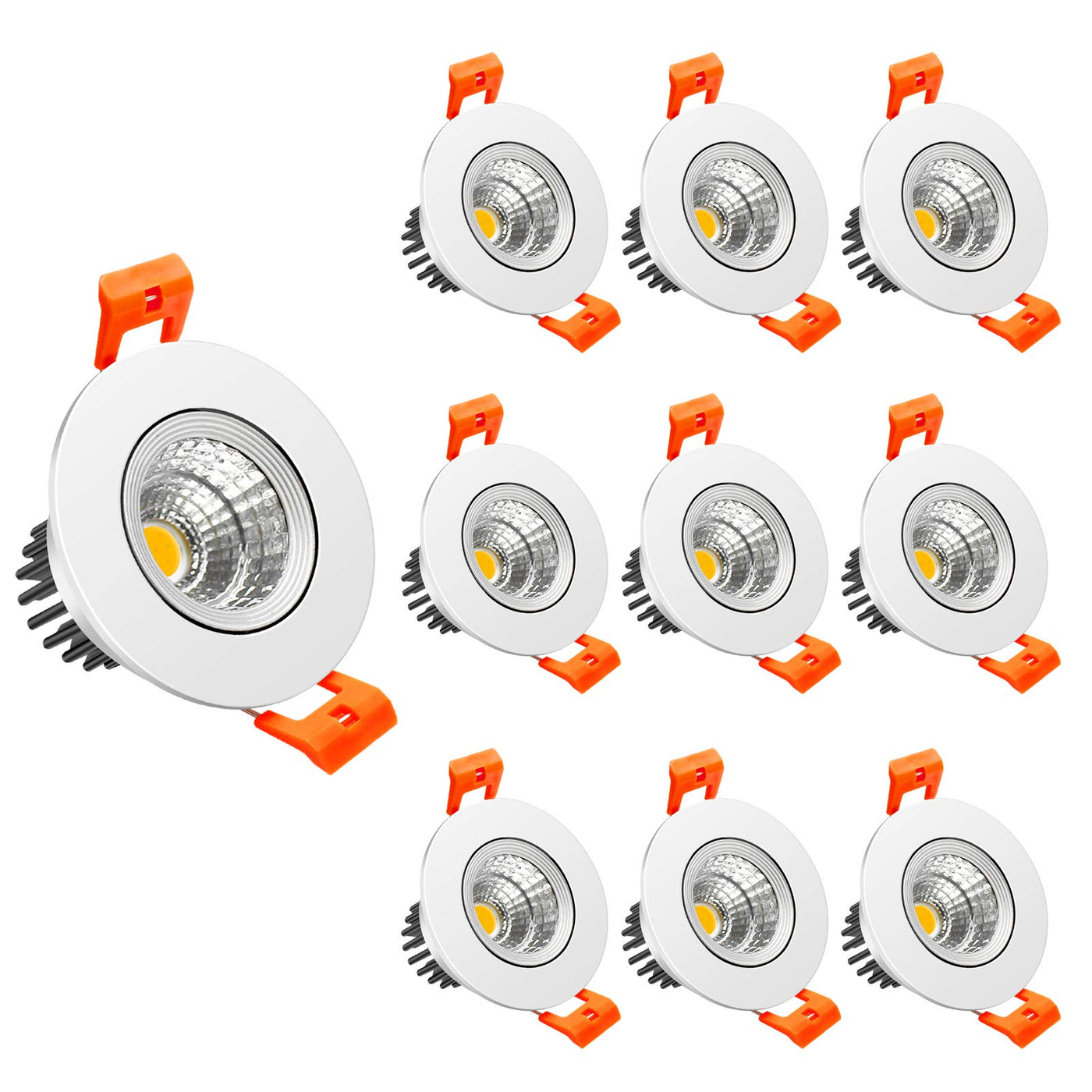 Lightingwill 2Inch Led Dimmable Downlight, 3W Cob Recessed Ceiling Light, Daylight White 5500K-6000K, Cri80, 25W 220Lm Halogen Bulbs Equivalent, White (10 Pack)