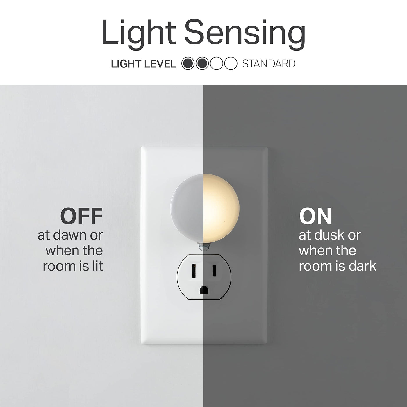 Q: What is the benefit of the dusk to dawn sensor in the Lights by Night Mini LED Night Light?A: The dusk to dawn sensor automatically turns the night light ON at dusk and OFF at dawn, providing convenience and energy efficiency. This feature ensures that you have light when you need it most without wasting electricity during daylight.