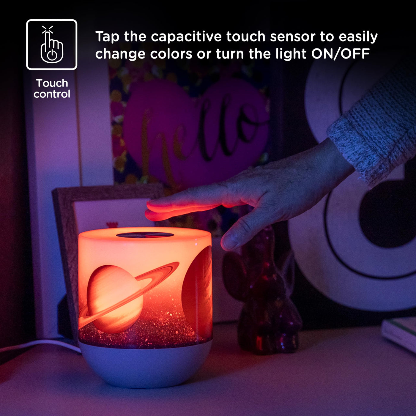 Lights By Night Space And Planets Color-Changing Table Lamp,Galaxy Night Light, Touch/Tap Sensor Dimmable White Light Ideal For