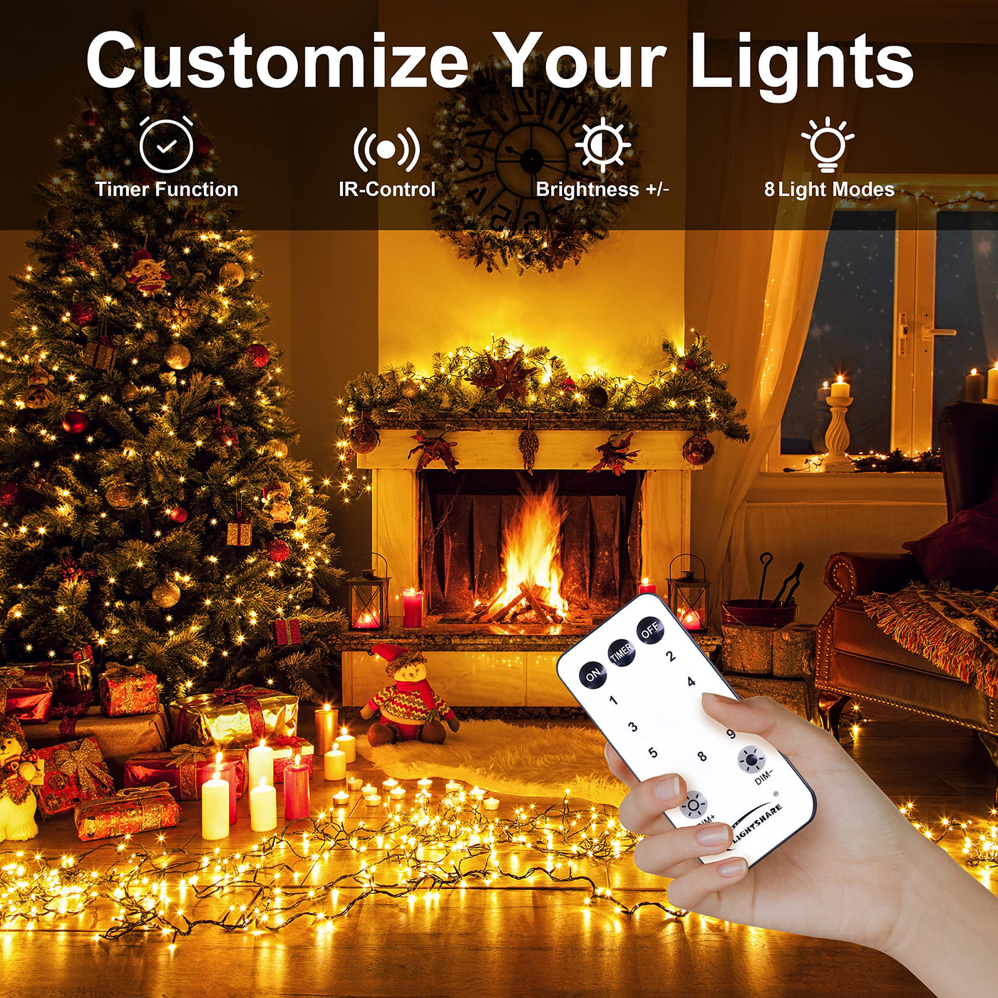 Lightshare 1000Led 328Ft String Lights Warm White, 8 Modes 30V Plug In Fairy Lights With Remote Control For Home Garden Yard Chr