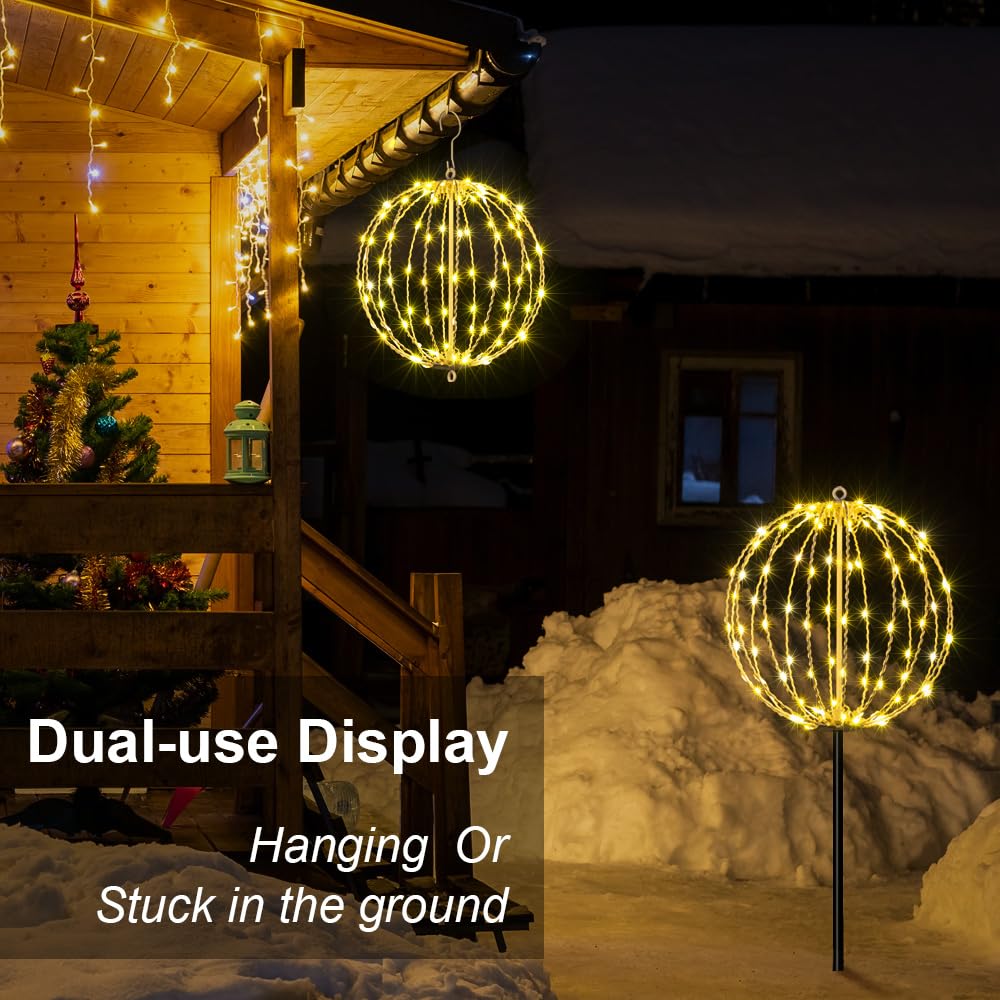 Lightshare 12In 96Led Light Ball Yard Decoration Pathway Lights Sphere Light With Fold Flat Metal Frame Indoor Outdoor Waterproo