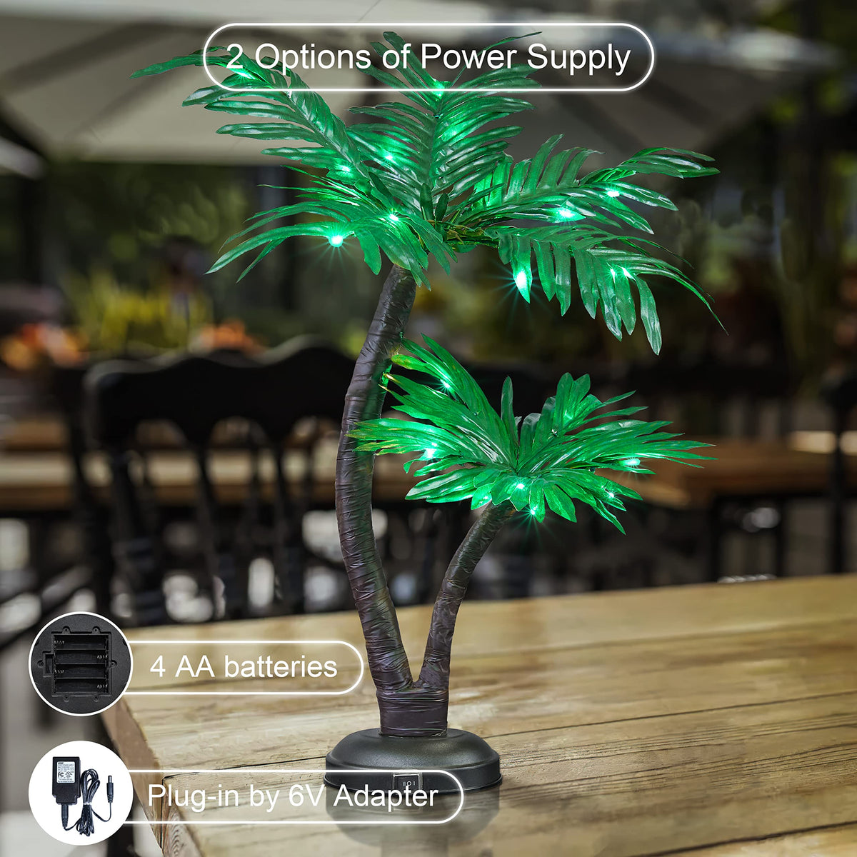 Lightshare 24Inch Twins Palm Tree Bonsai 25Led Lights,Green Light,Battery Powered Or Plug-In Adapter (Included), Built-In Timer