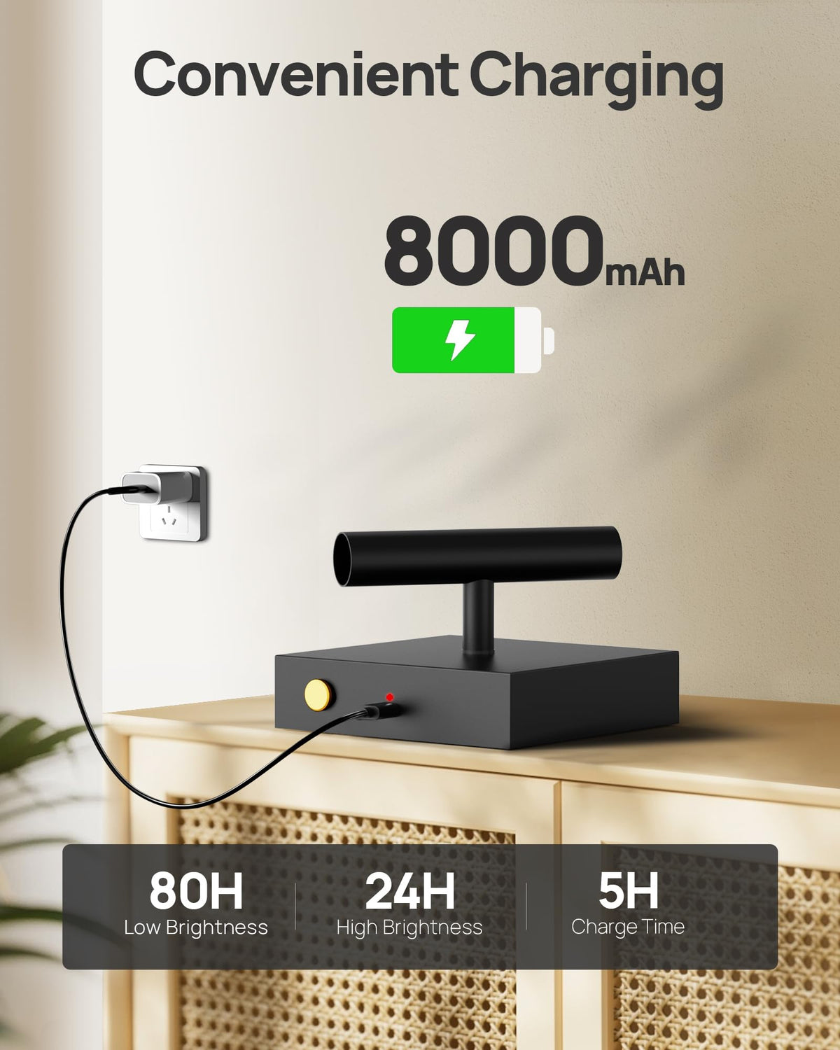 Elevate your lighting with the Modern Battery-Operated LED Wall Sconce, a perfect blend of sophisticated design and advanced functionality. Crafted with a sleek matte black finish and durable iron construction, this fixture is ideal for modern interiors, adding style and versatility to any room. Experience customizable lighting with three adjustable color temperatures (Warm 3000K, Neutral 4000K, Cool 6000K) and stepless dimming, offering precise control to create the perfect ambiance. Powered by a robust 6000mAh rechargeable battery, the sconce delivers up to 80 hours of runtime on low brightness and recharges fully in just 5 hours, ensuring reliable illumination whenever needed. Enjoy effortless setup with its wireless installation-no outlets or wiring required. The rotatable light arm offers flexible lighting direction, while the removable design streamlines recharging, allowing you to detach only the battery unit for added convenience. Operate the sconce with ease using the intuitive touch control or the included remote, featuring brightness adjustments, color temperature options, and a timer for ultimate convenience. Perfect for bedrooms, living rooms, or hallways, this wall sconce is the ultimate upgrade for modern, functional lighting.
