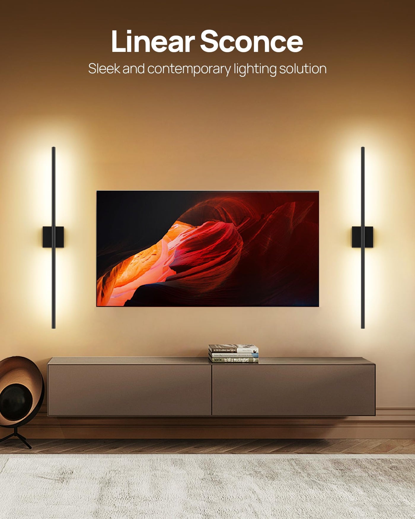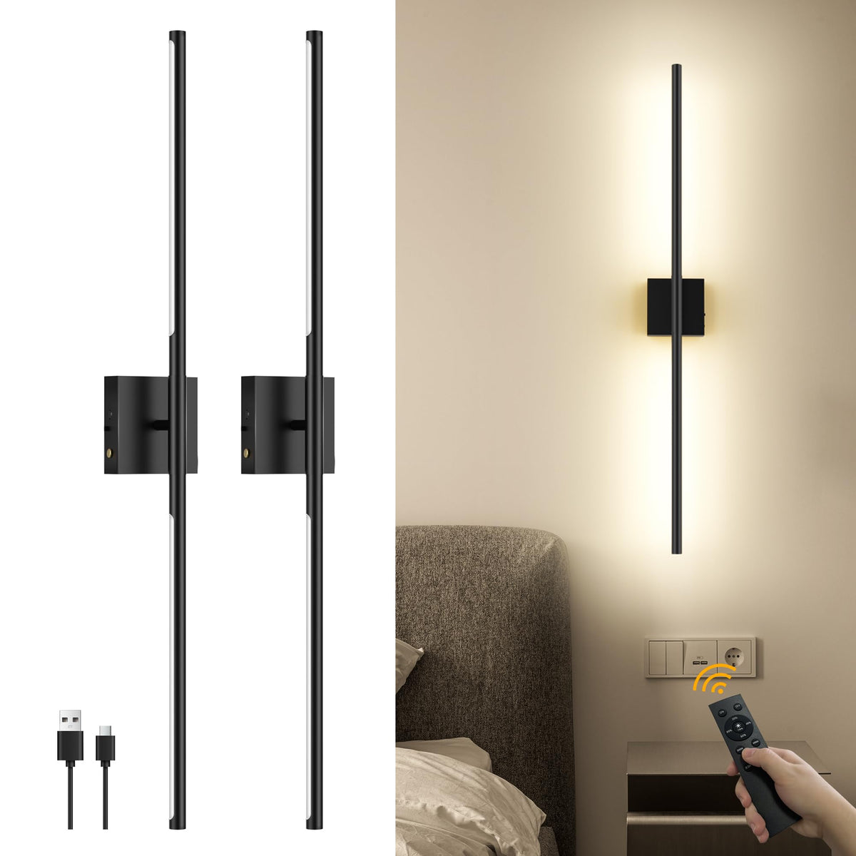 Likelgn 35'' Dimmable Linear Led Wall Sconce, Set Of 2, Battery Operated, Remote Control, 360 Rotating, Wireless Rechargeable Mo