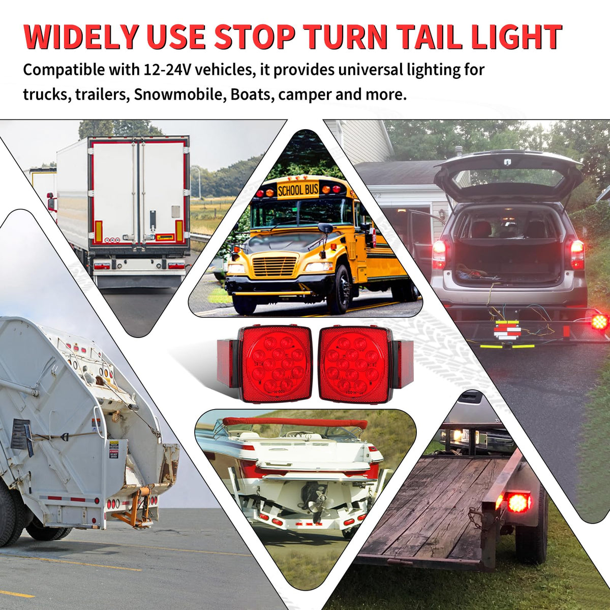 Liloom Complete Led Trailer Light Kit - Submersible Boat Led Lights With Square Tail Lights, Marker Lights, Brake Light Bar, Wiring Harness - Ideal For Trailers, Trucks, Boats