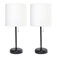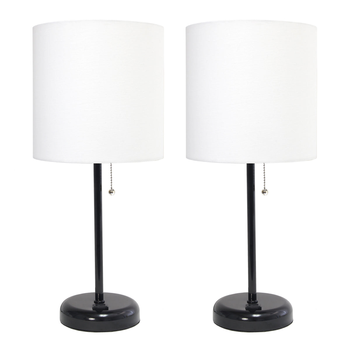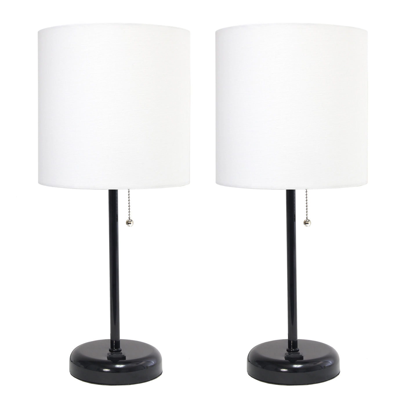 Limelights Black Stick Lamp With Charging Outlet And Fabric Shade Two Pack Set