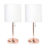Limelights Lc2002-Rgd-2Pk White Stick Lamp With Usb Charging Port & Fabric Shade Set, Rose Gold - Pack Of 2