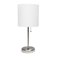Limelights Lt2044-Wht Brushed Steel Stick Lamp With Usb Charging Port And Fabric Drum Shade, White (Pack Of 2)