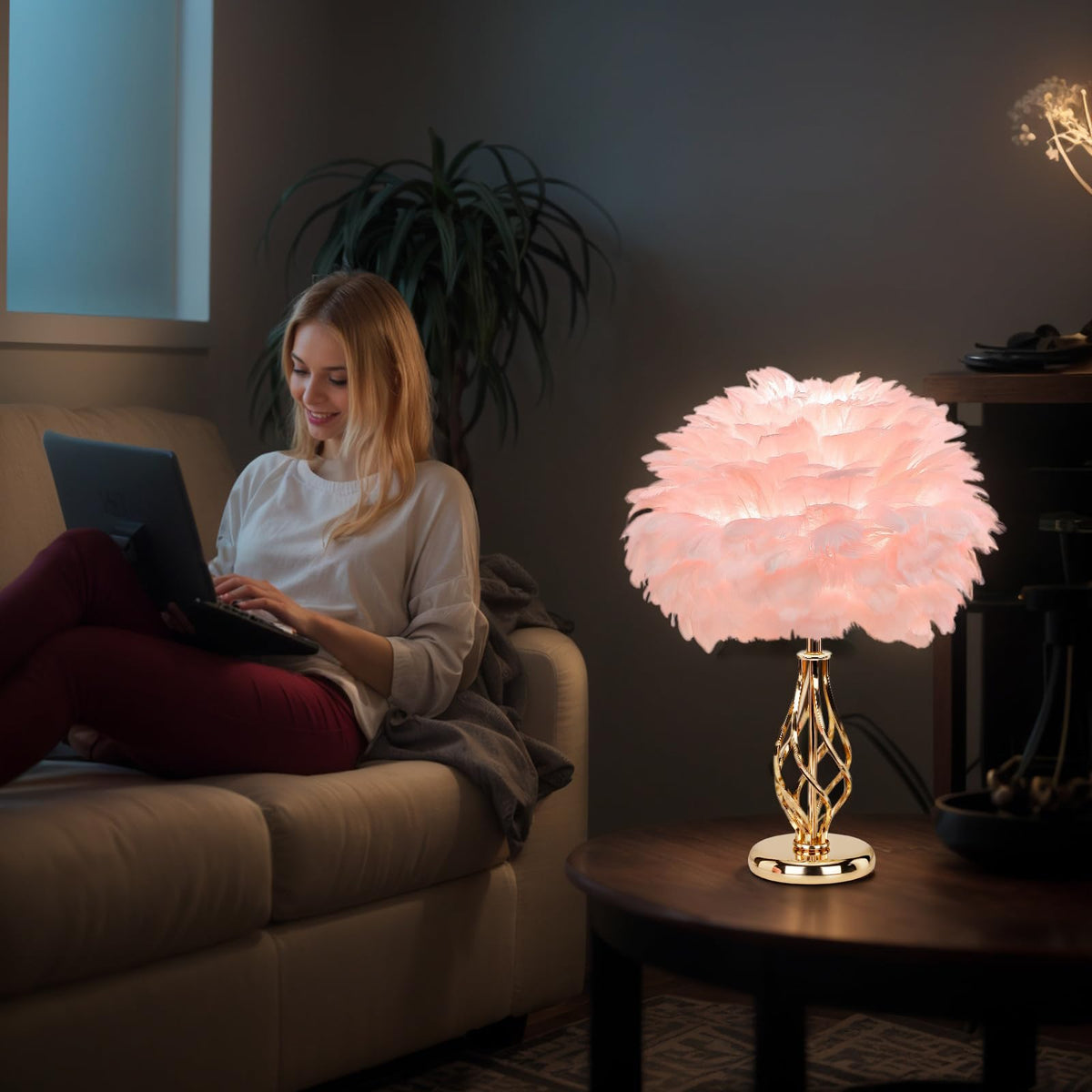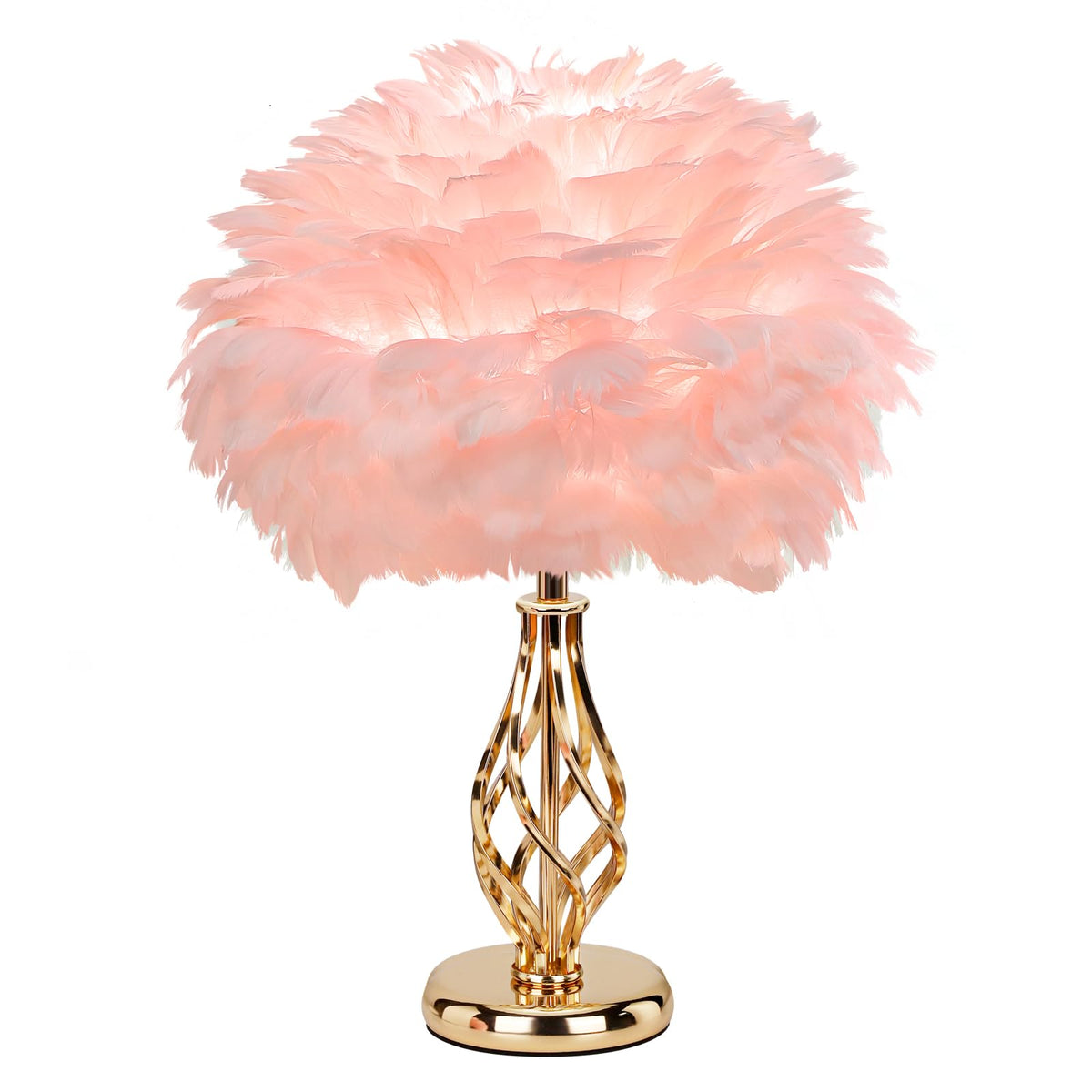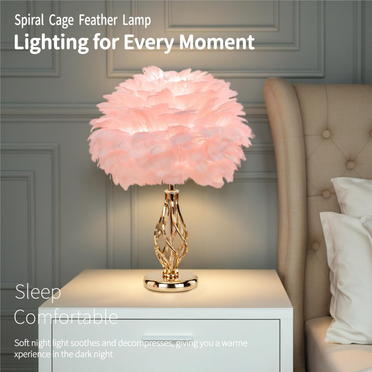 Lincwonz Feather Table Lamp With Unique Golden Spiral Cage Base - 3-Color Temperature Light, Perfect For Girls' Bedroom Bedside