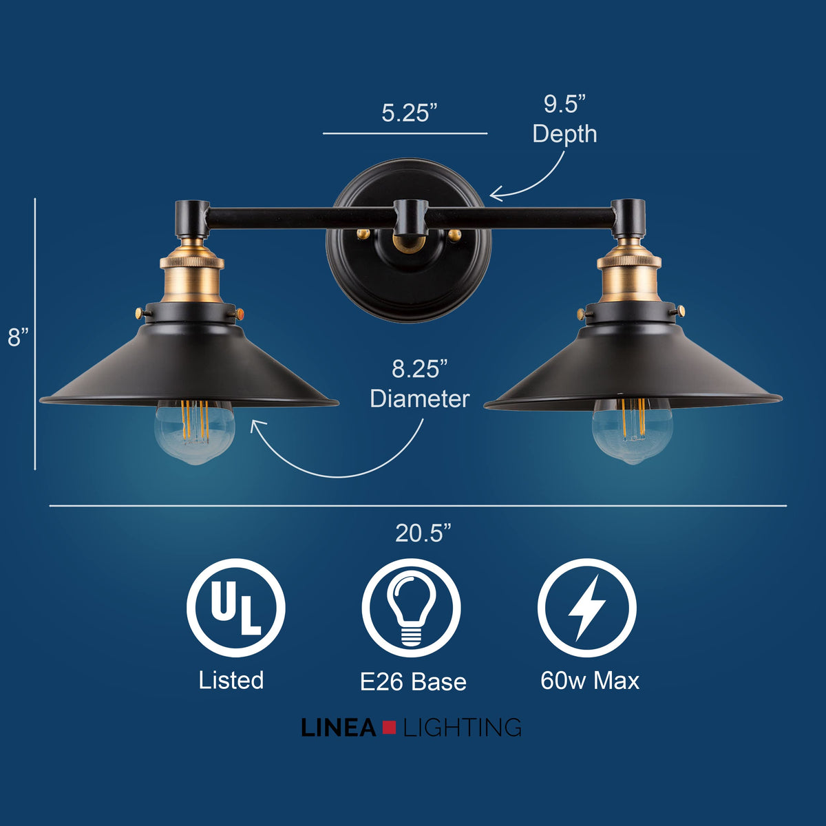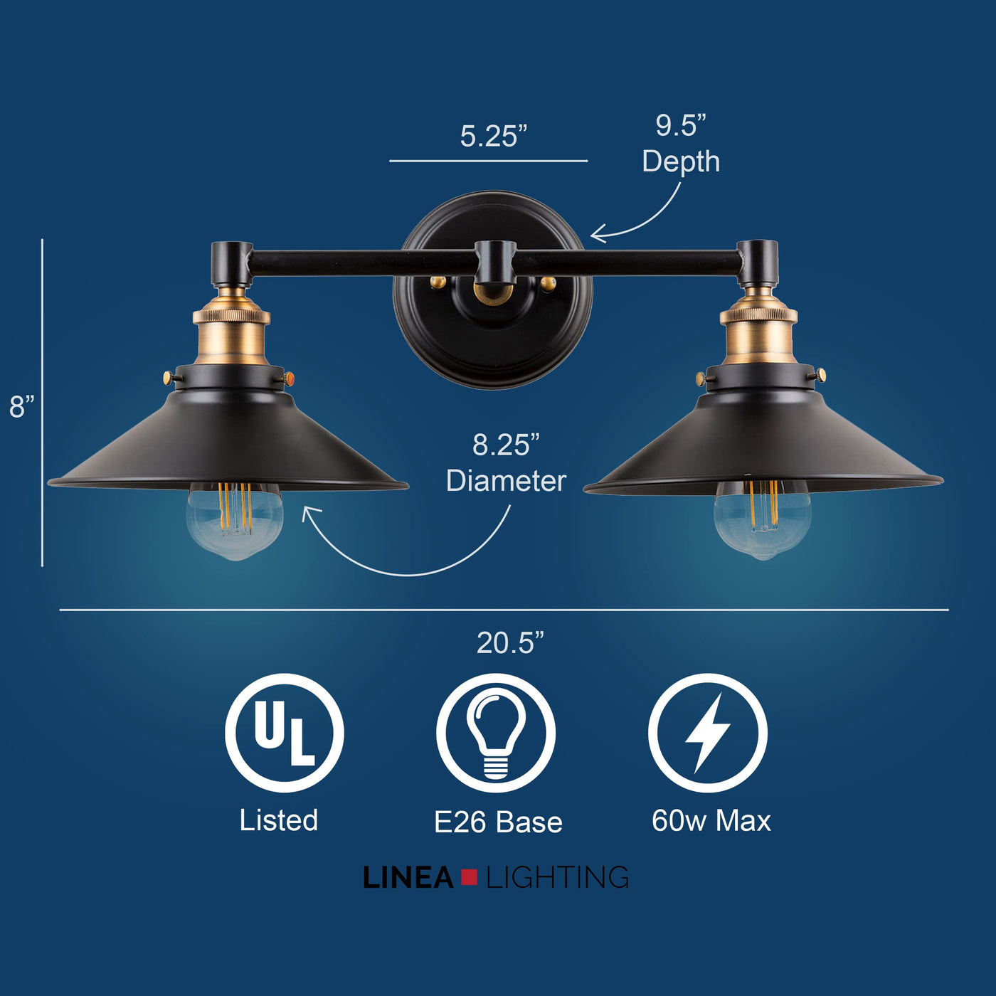 Linea Di Liara Andante 2 Light Bathroom Vanity Light Industrial Gold And Matte Black Light Fixtures Above Mirror Light Farmhouse