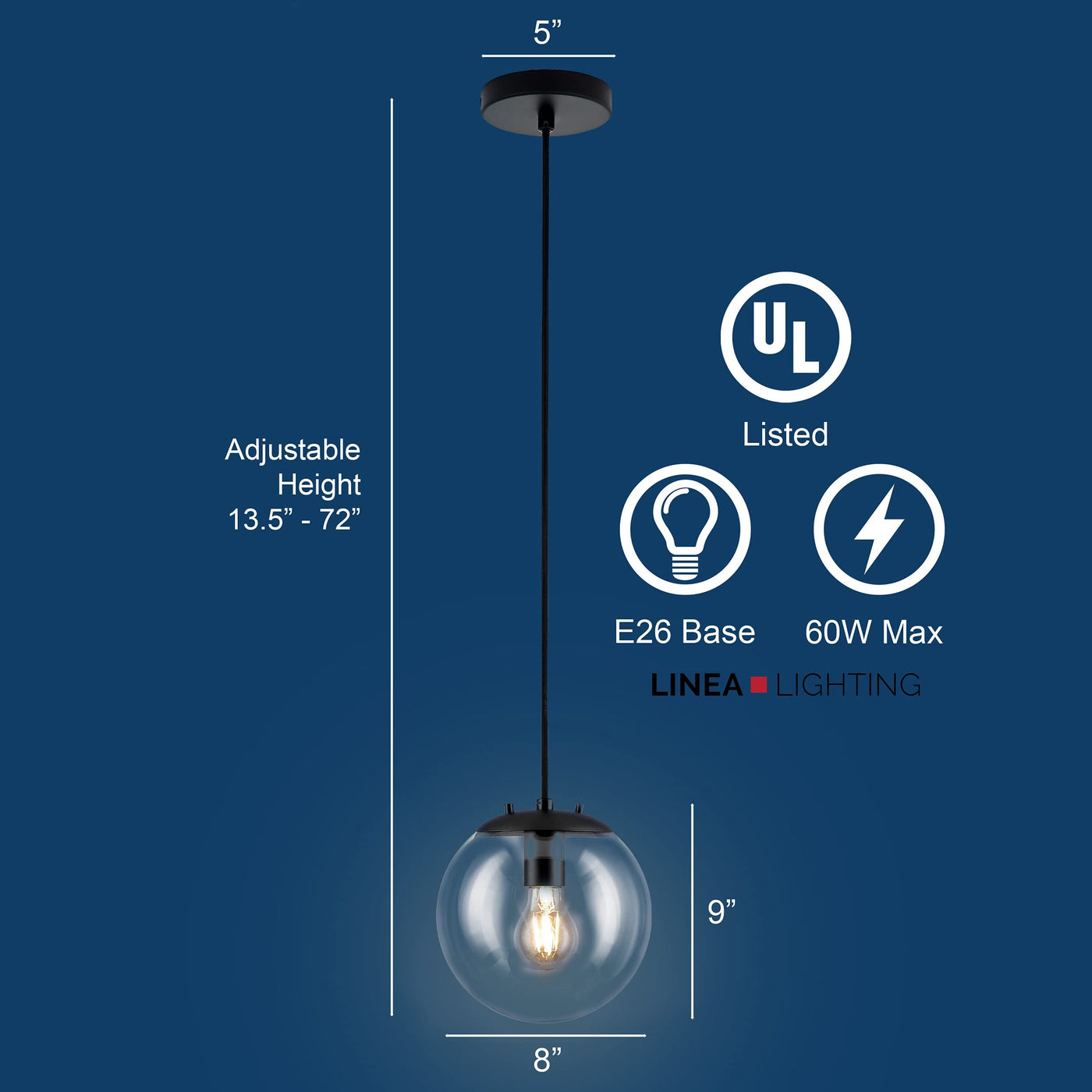 With Modern, Industrial Sophistication, The Sferra Kitchen Pendant Hanging Light Fixture Combines Black Accents With An 8-Inch, Handmade Clear Glass Globe. A Led Filament Edison Style Bulb Is Included For Vintage Flair, Completing The Functionally Elegant Look That Blends With A Wide Variety Of Home Or Office Decor. This Beautiful Pendant Ceiling Light Is Perfect For Kitchens, Over Counters And Islands, And In Hallways And Bathrooms. Metal Construction With A Black Finish Measures 8 Inches In Diameter By 9 Inches High Clear Glass Globe Measures 8 Inches In Diameter Fabric-Wrapped Cord For Adjustable Hanging Height: From 72 Inches (Max) To 13.5 Inches (Min) Dimmable When Used With Elv Dimmer Switch Includes One 4W 400 Lumen, Led Filament Edison Style Bulb, 2,700K Color Temperature 5 Inch Canopy Ideal For Level, Vaulted Or Sloped Ceilings Hardwired, Installation Required - Professional Installation Recommended 1-Year Manufacturer Warranty With Us Based Customer Service Ul Listed