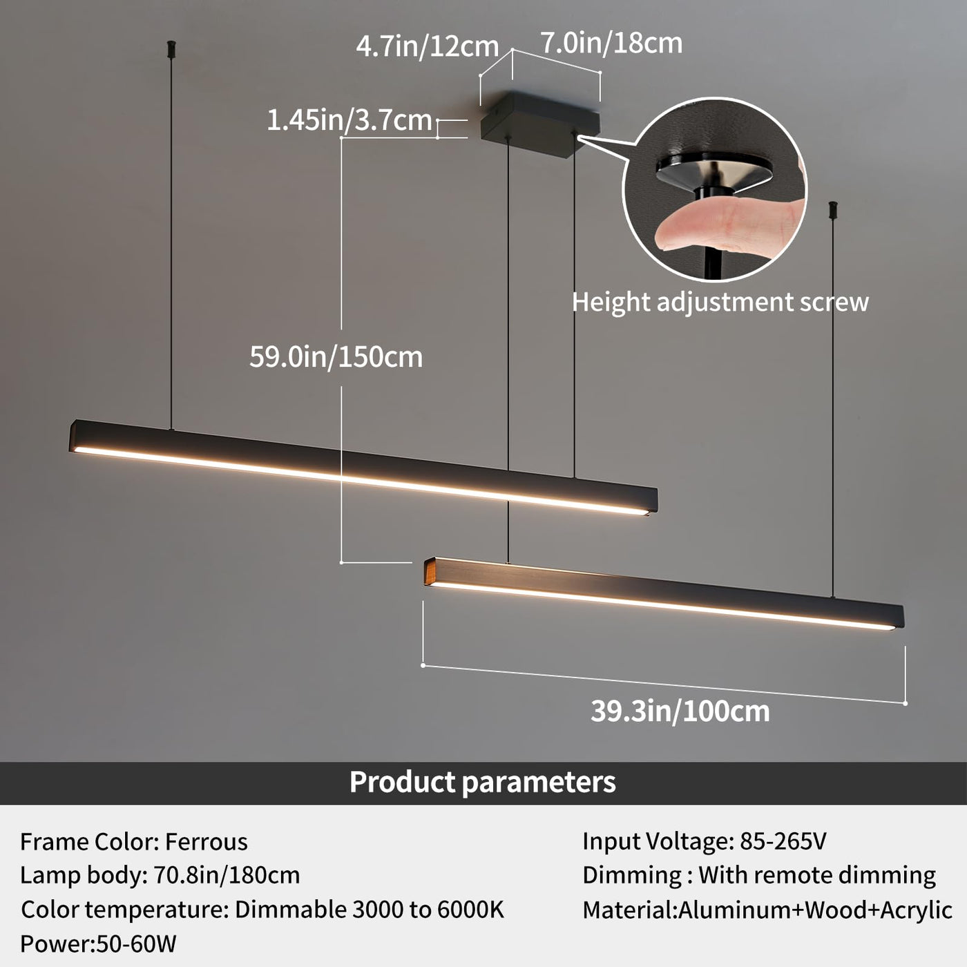 Q: Is this pendant light suitable for high ceilings?A: Yes, the height of the 71 Linear Pendant Light can be adjusted up to a maximum of 59 inches (150cm), making it ideal for rooms with high ceilings.