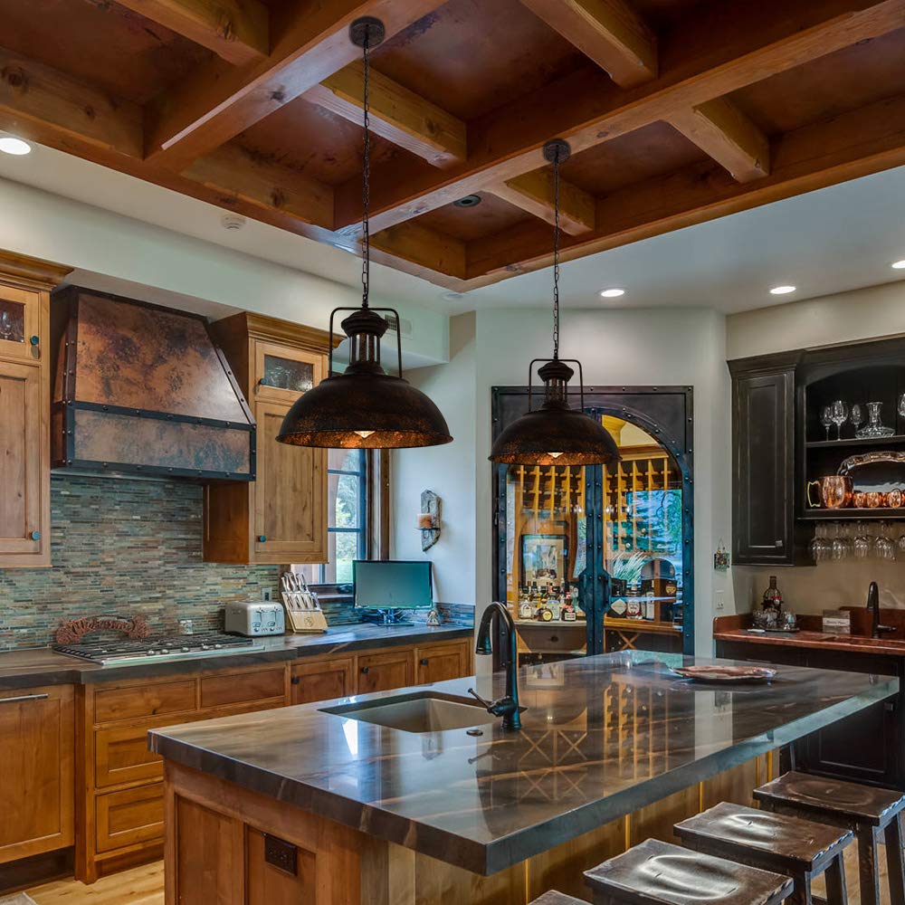 Lingkai 16.14" Farmhouse Pendant Light, Rustic Vintage Hanging Light Fixture Barn Dome Lampshade Ceiling Mount Lamp For Kitchen Island Dining Room
