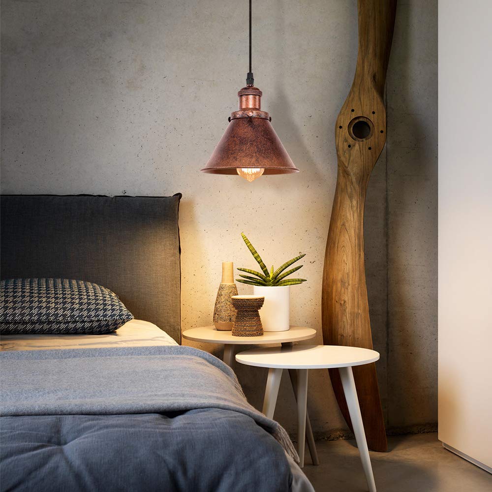 Lingkai Farmhouse Copper Pendant Light Rustic Cone Shade Mounted Fixture Hanging Ceiling Lamp Antique Painted Copper Finish Small Light